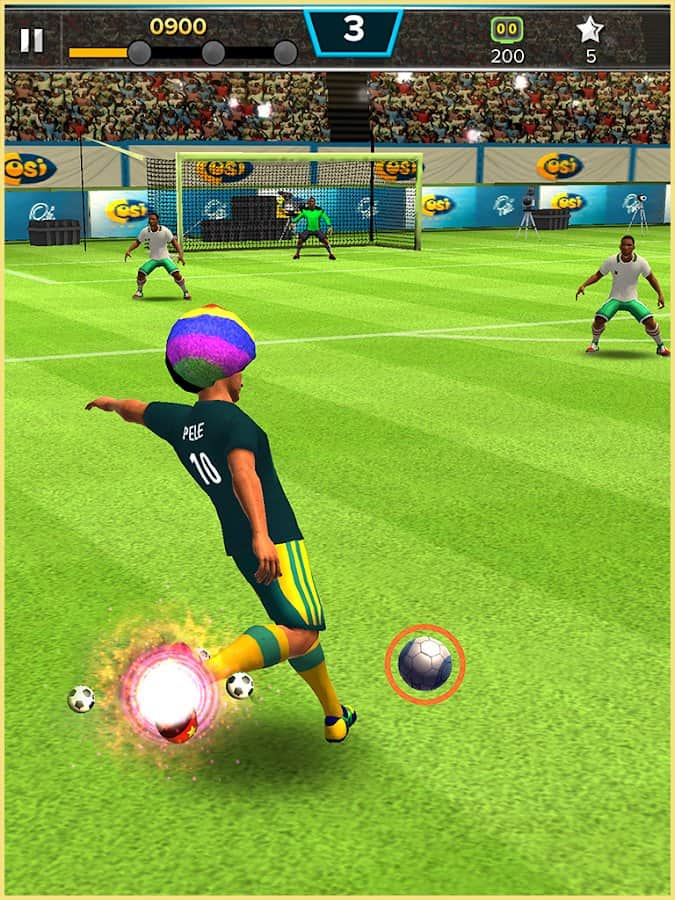 Pelé: Leyenda del Fútbol – un juego deportivo en Android donde jugarás como el famoso futbolista Pelé. Comienza tu carrera en las canchas de Brasil y asciende a una liga superior, convirtiéndote en el jugador más famoso del mundo. Toma el control de tu jugador y anota goles magistrales al oponente, ganando puntos y subiendo en la tabla de clasificación. El juego cuenta con 150 niveles únicos de complejidad que irán aumentando gradualmente. Completa todas las misiones del juego y realiza la difícil transición a la Premier League. El juego cuenta con un modo multijugador donde puedes competir con jugadores de todo el mundo. Anota el penalti y gana premios.
