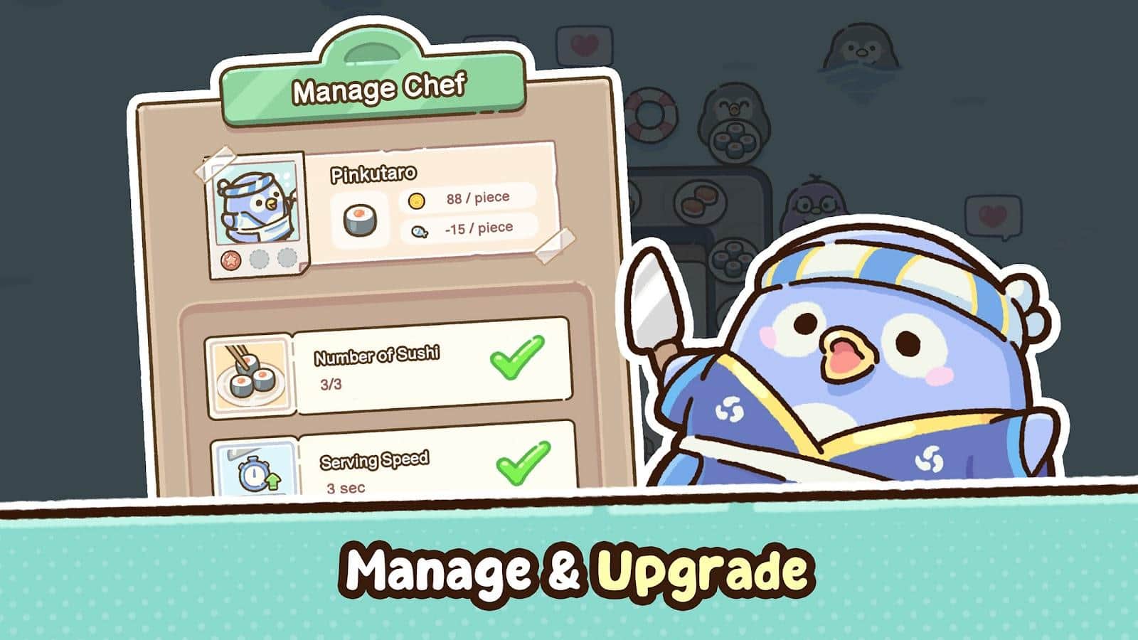 "Barra de Sushi Pingüino" es un juego de Android donde los maestros helados se convierten en genios culinarios. Aquí, cada pingüino no solo es un nadador, sino también un verdadero artista en la preparación de sushi. Desde salmón fresco hasta rollos de alga crujiente, nuestra barra ofrece sabores exquisitos, sacia la sed de los gourmets exigentes y te brinda el sabor único de la Antártida. Toma el control de un pingüino y prepara el sushi más delicioso que agradará a tus visitantes y conviértete en un maestro de tu oficio.