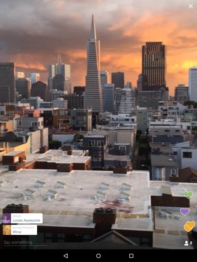 Esta aplicación es una forma bastante inusual de "espiar" a todo el mundo. Periscope permite crear transmisiones de eventos interesantes o unirse a transmisiones ya existentes. La funcionalidad de la aplicación es bastante predecible, considerando para qué fue creada: tu video puede ser público o privado, hay una opción para marcar el lugar de la transmisión en el mapa, y puedes guardarlo para verlo posteriormente sin conexión. La parte social también está bastante bien diseñada: los espectadores pueden dejar me gusta y comentarios, la cantidad de me gusta en las transmisiones aumenta tu clasificación, puedes seguir a nuevos usuarios, y hay integración con Twitter.