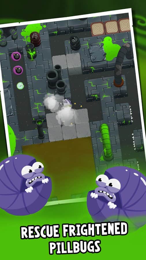 Phil The Pill es un juego de rompecabezas arcade que los creadores donde ir ya ha sido probado tomando una serie de elementos de mega éxitos del pasado como Bomberman, Pacman, Mario. Sin embargo, Phil The Pill no es solo una copia de los famosos juegos arcade, los desarrolladores han tomado algunos de los elementos de jugabilidad y en él se creó desde cero un mundo de juego, personajes, trama. Y ahora más sobre esto. El juego se desarrolla donde las personas comunes intentan no ir, a saber, en las alcantarillas, utilidades subterráneas y otros lugares oscuros y húmedos. Esto es comprensible porque los protagonistas del juego eran cochinillas, todo un Reino de cochinillas, y para jugar no es difícil adivinar que tendrás el papel de Phil, también cochinilla. Y así, encontrarás una enorme cantidad de niveles, pasando los cuales tendrás que usar toda tu habilidad, ingenio y atención.
