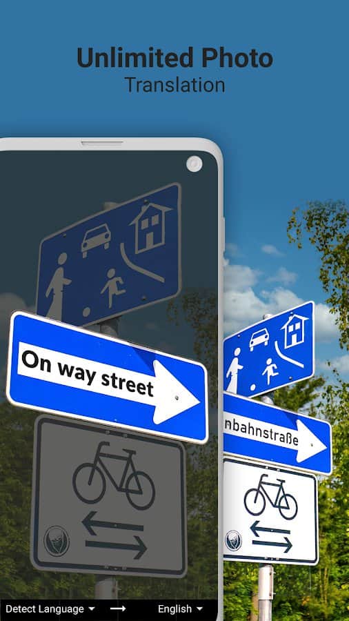 Traductor de fotos - traduce con una cámara - Cuando viajas a otros países, no siempre es ideal hablar un idioma extranjero, porque un traductor especial puede ayudarte a traducir cualquier palabra o frase. Es suficiente con encender la cámara de tu teléfono, apuntarla al lugar deseado, y luego tomar una foto y esperar la traducción completa. Si la inscripción no es muy visible, puedes encender la linterna, o tomar una foto de todo con la cámara regular de un teléfono inteligente y simplemente insertar la foto terminada en la aplicación. ¡Más de 100 idiomas están disponibles para usar en este momento!
