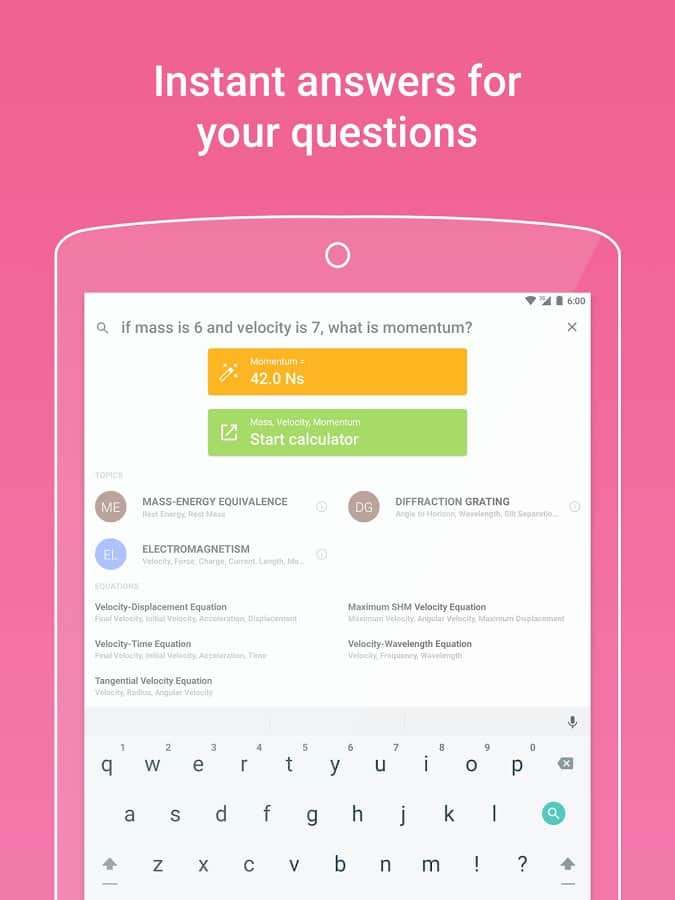 PhyWiz - Solucionador de Física - Difícil de ejercitar - ¡fácil en batalla! Pero, ¿qué pasa si la enseñanza es demasiado dura y es imposible resolver uno de los problemas de física? Guardarás esta aplicación porque ha sido creada para resolver problemas en más de 30 áreas diferentes de la física. Estas áreas incluyen: cinemática, fuerza, gravedad, física cuántica y más.
