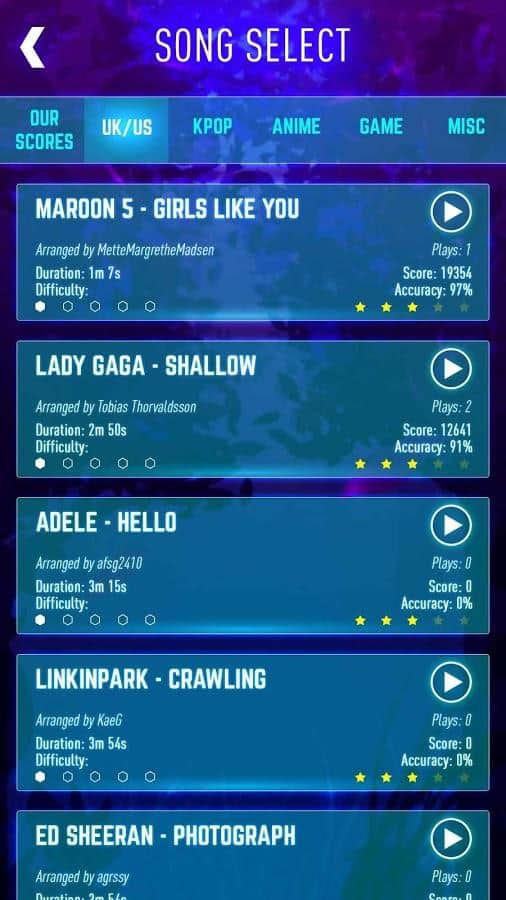 Piano Beat – un juego de música relajante para Android, con paisajes hermosos y una banda sonora cuidadosamente seleccionada. En este juego puedes jugar siempre que tengas tiempo libre y disfrutar de las melodías relajantes y la jugabilidad pacífica. Cada canción se colocará en mundos aleatorios y hermosos donde podrás poner a prueba tus reflejos y habilidades rítmicas. Sumérgete en el mundo del piano y elimina el estrés después de un largo día de trabajo. En el juego encontrarás dos modos de juego en un piano hexagonal: el camino difícil - donde debes presionar en el centro del hexágono. Camino fácil - solo escucha la música y toca la pantalla a tiempo.