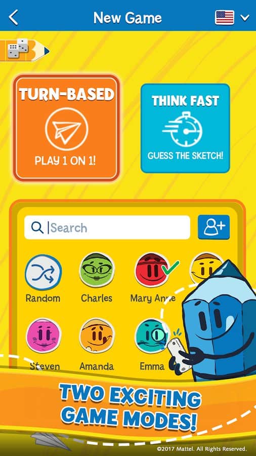 Probablemente cada uno de ustedes al menos una vez, vio películas extranjeras en las que uno de los miembros de la compañía piensa en una palabra y dibuja una parte separada, o pista en una hoja de papel, y dos equipos intentan adivinar la palabra, el ganador es el equipo que adelante adivinará cuál es la palabra o término. A pesar de la simplicidad del juego, es perfecto para divertirse con amigos. Ahora tienes la oportunidad de usar esto en tu dispositivo Android. Pictionary - la versión para Android del mismo juego de mesa, la implementación digital tiene varias ventajas sobre el original, diferentes modos, la capacidad de dibujar coloridos dibujos e incluso animarlos y mucho más.