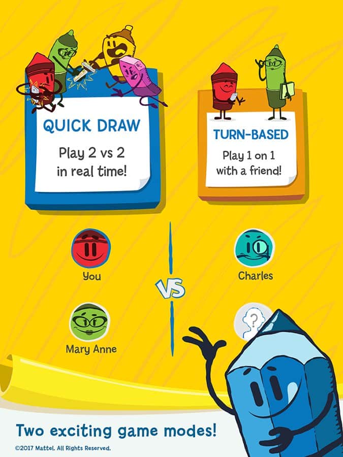 Pictionary - Esta aplicación es una herramienta de dibujo simple que te enseñará a crear tus obras maestras y al mismo tiempo es un juego emocionante donde puedes competir contra el tiempo. La idea es que dibujes un patrón determinado lo más rápido y bonito posible, y luego decidas cuál de las obras maestras salió mejor. Este juego es perfecto para adultos y niños que les gusta dibujar siempre que sea posible. Enseña a tu hijo a no dibujar en el papel tapiz y aprende el verdadero arte de dibujar en la tableta.