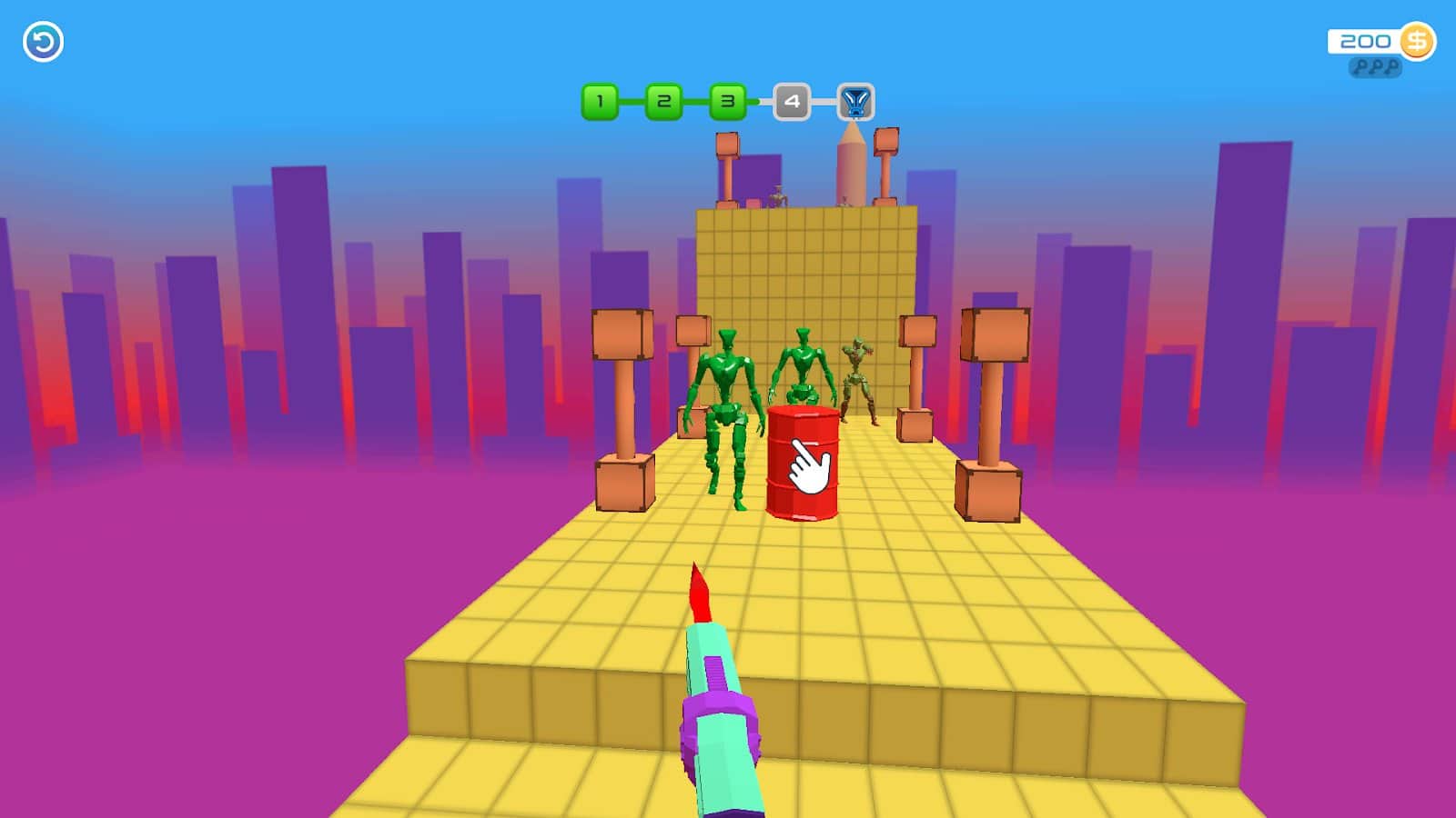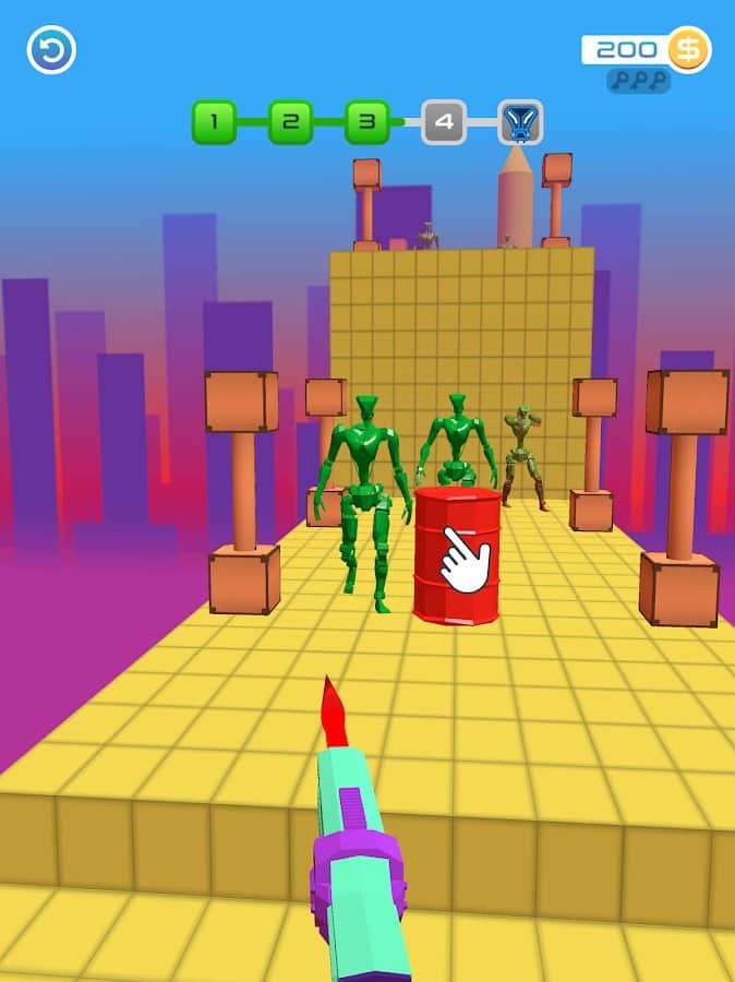 ¡Atrápalos a todos! 3D - Toma una buena ballesta y comienza a destruir a los alienígenas, moviéndote en extrañas plataformas. Cada nivel consiste en varias etapas, solo después tienen la oportunidad de encontrarse con el jefe principal. Lucha hábilmente contra los enemigos disparándoles flechas, para que queden clavadas en una pared u otro lugar y no te interfieran. La única condición: no permitas que tus oponentes se acerquen demasiado a ti, de lo contrario podrán atacarte y matarte. Usa tus habilidades de tiro y completa el juego con valentía.