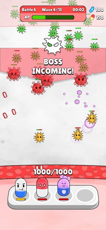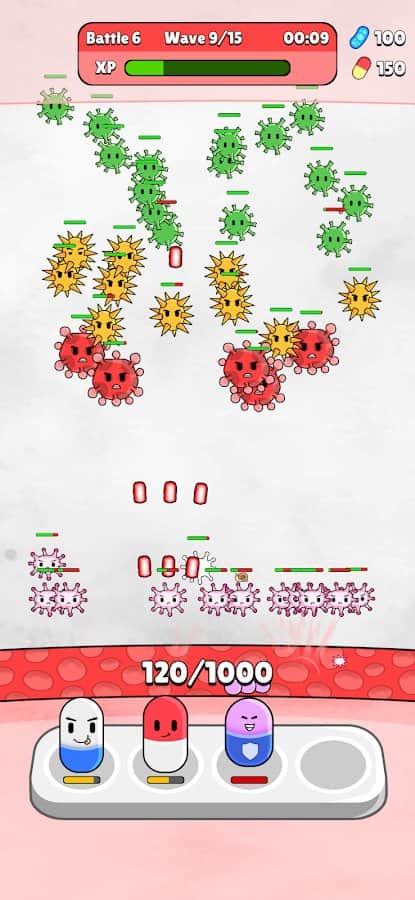 Pill Fortress - Sumérgete en el cautivador mundo de Pill Fortress, un juego de Defensa de Base donde tu tarea es defender la fortaleza inmune de oleadas de virus atacantes. Coloca píldoras en puntos estratégicamente importantes en el muro y utiliza mejoras tácticas para fortalecer tu defensa y aumentar tus posibilidades de supervivencia.