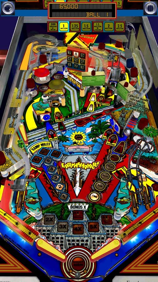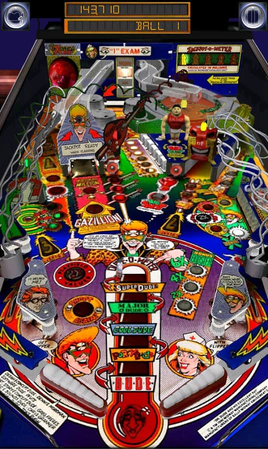 Pinball Arcade pinball real en Android, combinando las mesas más populares. En este juego descubrirás un mundo único de pinball, donde tu tarea principal es obtener la máxima puntuación. Lanza la bola en vuelo y utiliza los flippers para golpearla más lejos laminando en el campo de juego. Entrena tu reacción y velocidad de los dedos y logra excelentes resultados. En este juego te esperan mesas como Williams®, Bally®, SternPinball® y Gottlieb®. Desafía a tus amigos y a otros jugadores de todo el mundo y participa en varios torneos en línea. Disfruta de excelentes gráficos, física realista y efectos de sonido.