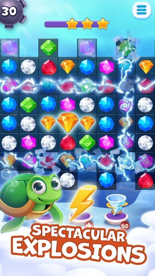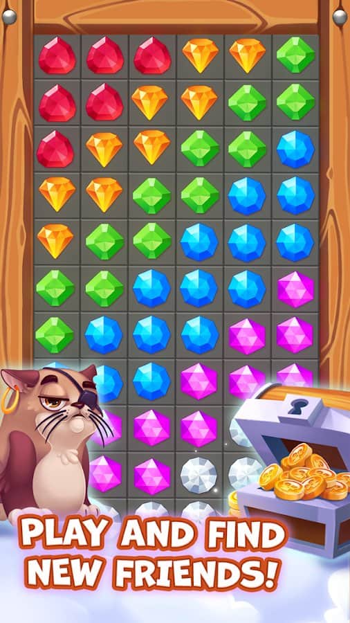 Tesoros Piratas - Puzzle de Gemas – un emocionante juego del género tres en raya en Android donde irás en busca del tesoro pirata. Embárcate en un fascinante viaje junto a los personajes de este juego y encuentra innumerables tesoros y gemas. Busca cartas antiguas, sigue sus instrucciones y supera emocionantes niveles a lo largo del juego. Combina tres o más gemas del mismo color y pasa niveles fascinantes, ayudándolos a enfrentar diferentes situaciones. Juega con amigos y no dejes que te desvíen en el camino hacia la riqueza.