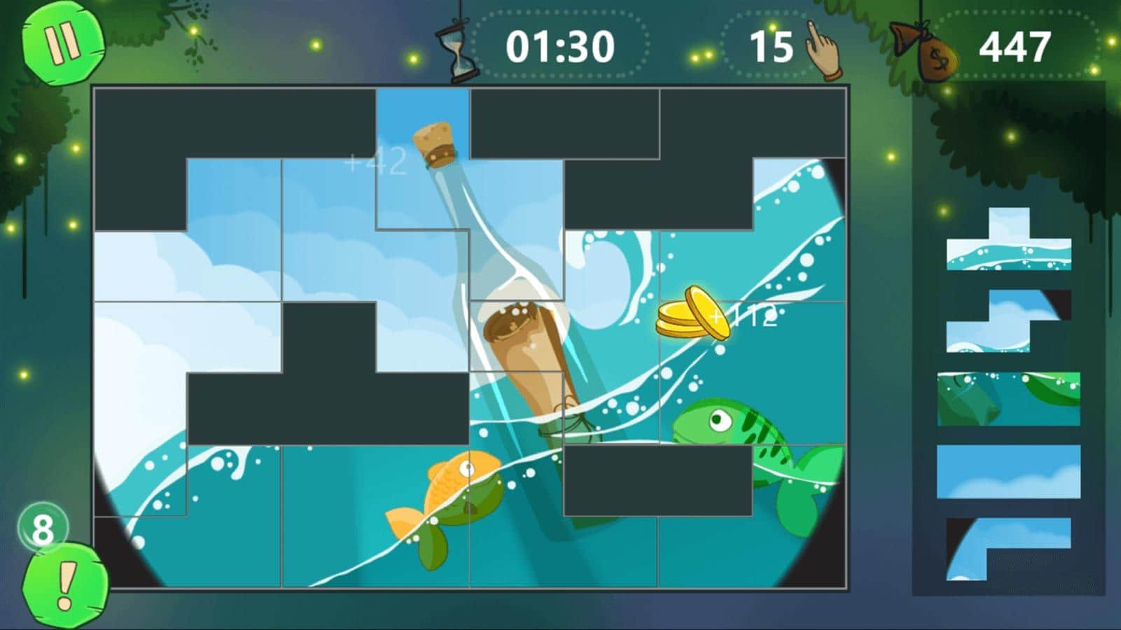 Rompecabezas pirata - La caza del tesoro es un juego en el que te embarcarás en una isla perdida en el océano y buscarás tesoros piratas. Arma diferentes rompecabezas relacionados con el agua y los tesoros y descubre invaluables tesoros piratas. Viaja por diversas islas y encuentra en tu camino a varios héroes como sirenas, demonios marinos, pulpos y otros héroes de cuento. Entrena tu lógica y pensamiento crítico e intenta resolver más de 64 rompecabezas y encontrar todos los tesoros. El juego es adecuado tanto para niños como para jugadores adultos.