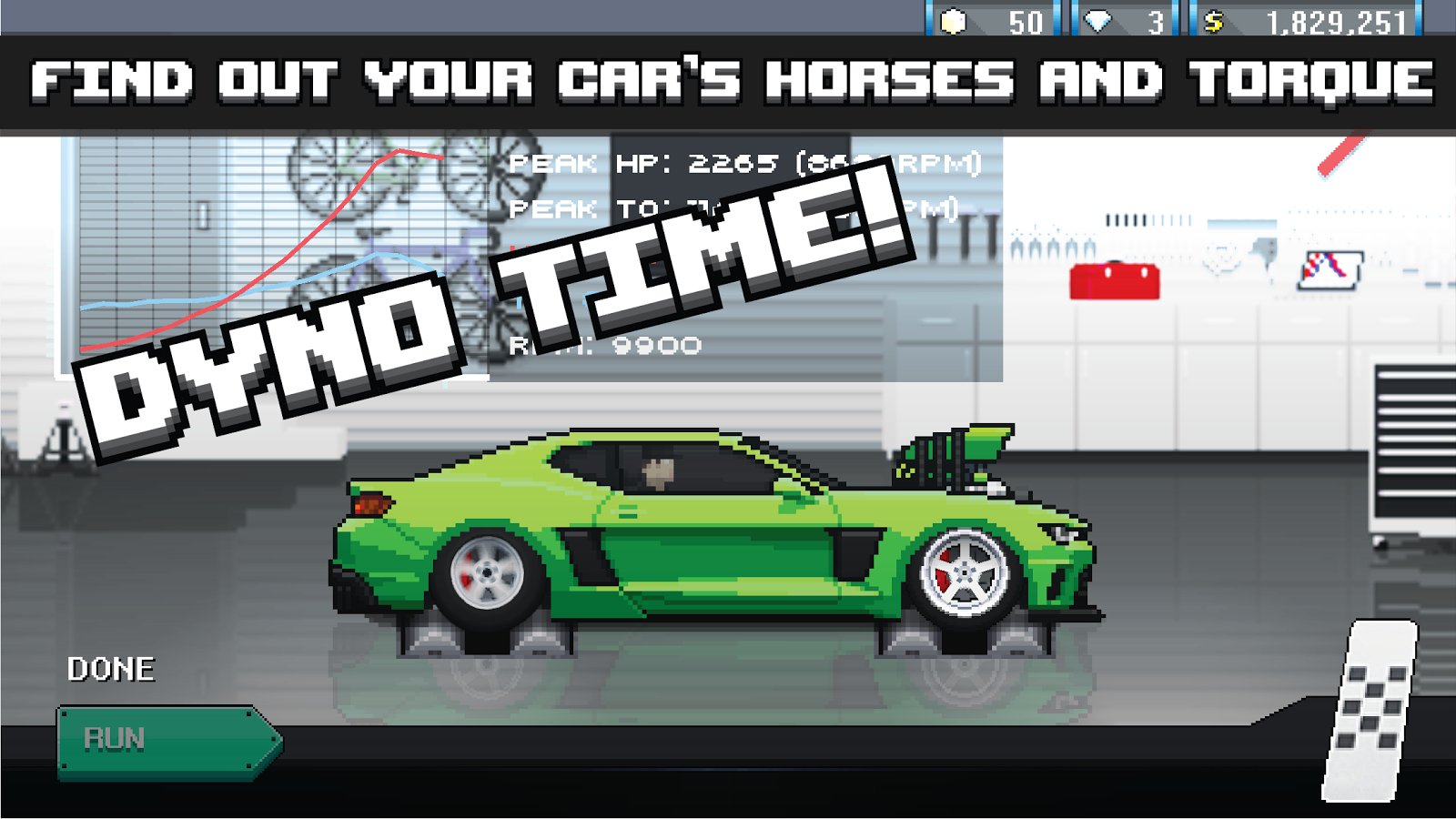 Pixel Car Racer - el juego representa algo completamente nuevo y original. Primero, digamos que es una especie de mezcla entre un sandbox y carreras. Pero primero lo primero. primero, necesitas construir un pequeño garaje, y luego puedes empezar a trabajar en el coche, convirtiéndolo gradualmente en el pequeño taller automotriz de tus sueños. Afortunadamente, tienes todo lo que necesitas. A tu disposición habrá alrededor de 50 coches diferentes y más de 1000 piezas de repuesto diferentes, así que el mantenimiento del coche está en tus manos. Además de trabajar en el garaje, tendrás la oportunidad de probar tus creaciones en la pista en varios modos, y es aquí donde necesitas toda tu habilidad. El ajuste fino del motor, la selección de piezas pueden afectar el resultado.