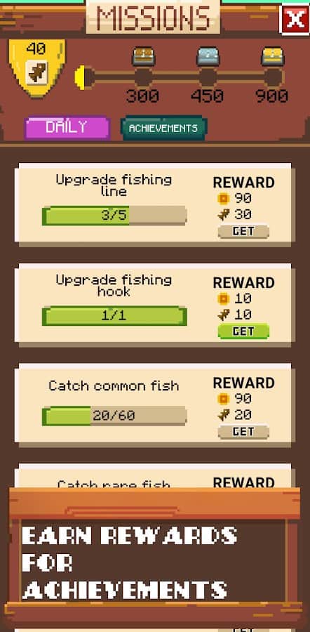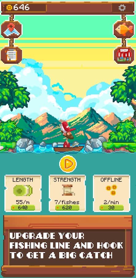 Gana monedas, incluso si no estás en línea, y construye tu arsenal de pesca.