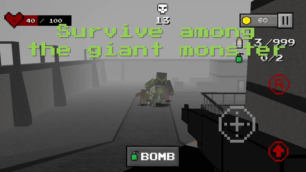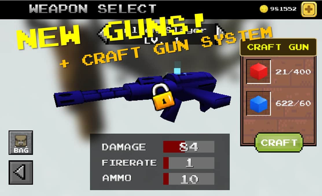 Pixel Gunner es un shooter de píxeles en Android, que se desarrollará desde la primera persona. Toma en manos un arma poderosa y atraviesa numerosas localizaciones, destruyendo enemigos y zombies. Intenta sobrevivir y durar tanto como sea posible en este juego. Recoge una variedad de materiales y recursos y crea tus propias armas o mejora las existentes. Conviértete en el mejor cazador de zombies y obtén resultados increíbles. En el juego encontrarás varios modos de juego y muchas misiones. Destruye a todos los zombies y enfréntate a los jefes.