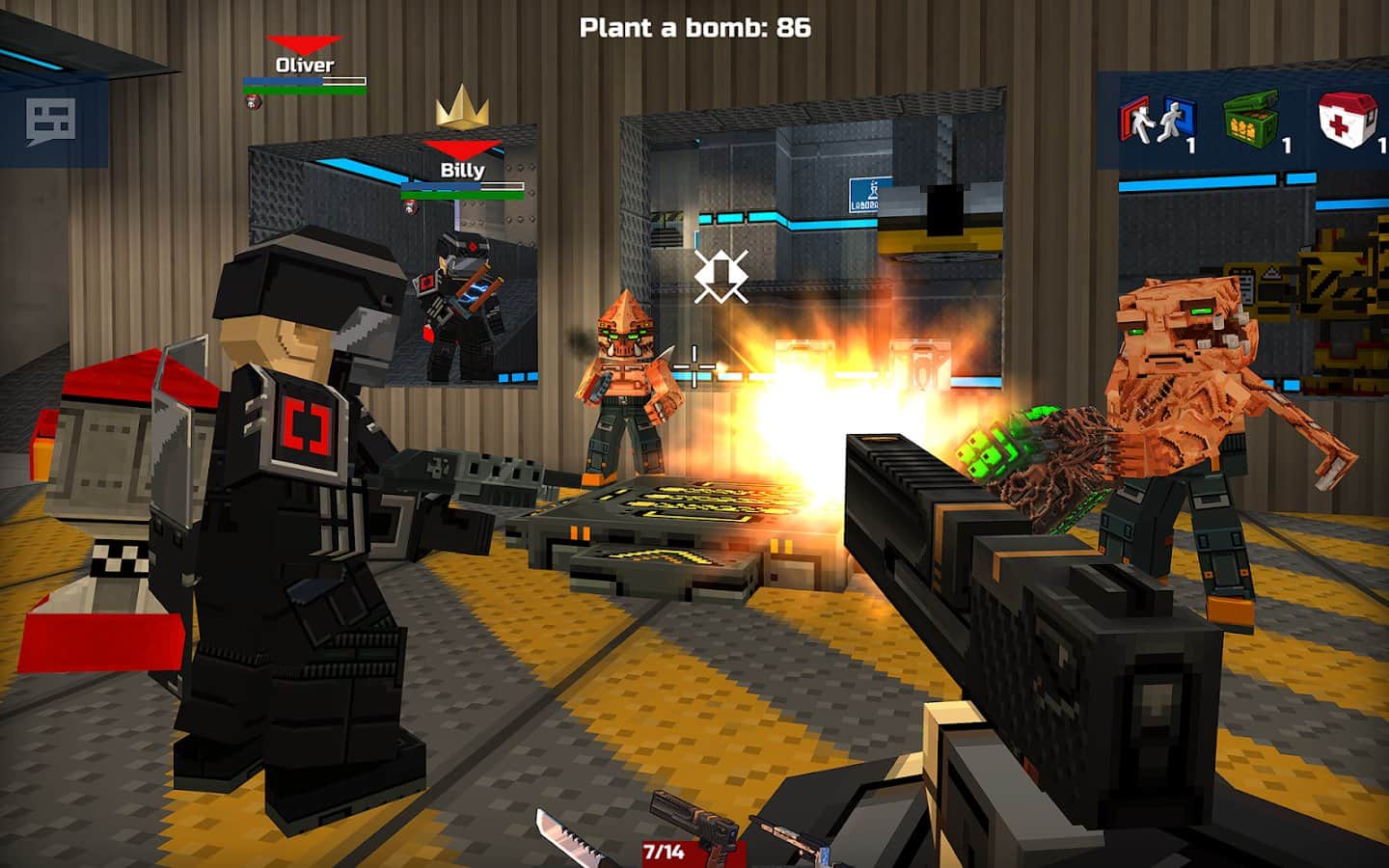 Pixelfield - Tirador multijugador en línea perfecto para Android. El juego te complace con controles agradables y sencillos, muchas armas y apariencias. Destruye monstruos o zombis en modo un jugador y no olvides la posibilidad del modo multijugador.