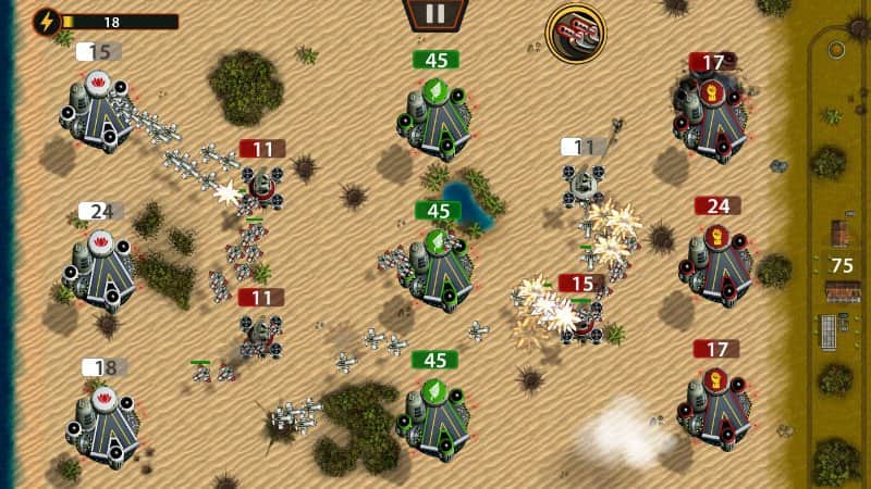 Plane Wars - Una estrategia interesante en Android con una ejecución completamente nueva. El juego es un simbiosis de una estrategia convencional y un juego del tipo tower defense. En él, necesitas capturar otras bases, así como defensa aérea y radares. También acumula energía, te dará la posibilidad de controlar el clima, acelerar la construcción de aviones y construir dirigibles. En el juego hay 5 países, cada uno de ellos tiene su propio avión único.