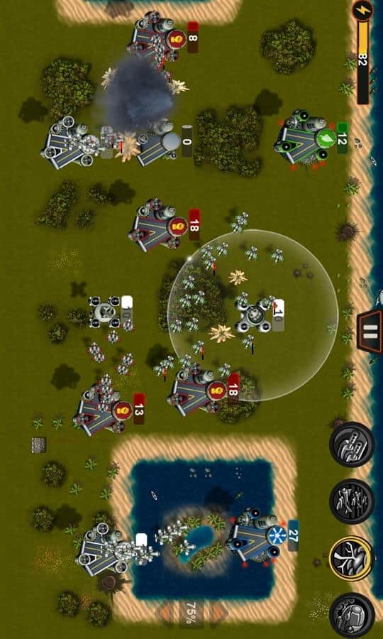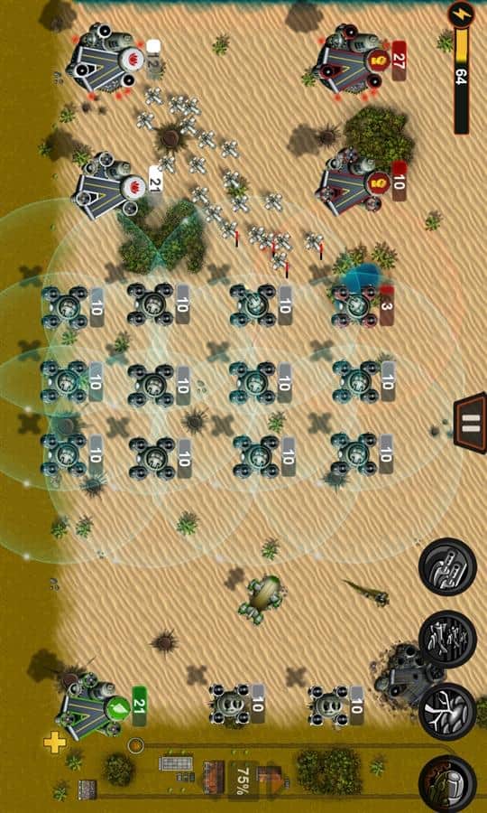 Plane Wars - un juego para Windows Phone, en el que asumirás el mando de la aviación en tiempos de guerra. Muestra todas tus habilidades estratégicas en la captura de bases enemigas, mejora las características de tus bases y participa en combates aéreos. Tendrás a tu disposición una gran variedad de unidades, como aeródromos voladores, defensa aérea, radares y diferentes aviones. Acumula la energía y las habilidades que necesites para tener la capacidad de controlar el clima, acelerar la producción y crear dirigibles. El juego no te dejará aburrido, ya que cuenta con una gran cantidad de niveles diversos y varios modos.