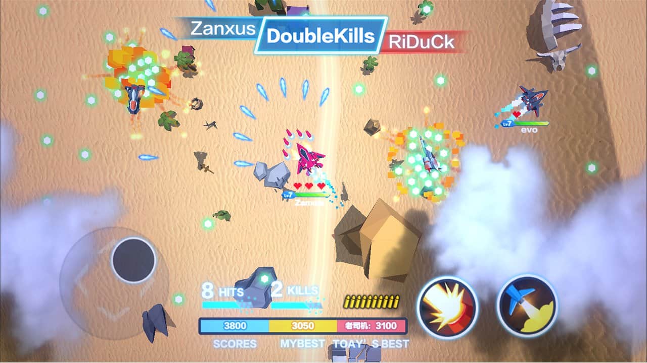 PlanesBattle – controla un pequeño avión y participa en batallas aéreas con los enemigos. En este juego, controlarás un avión e intentarás derribar tantos aviones enemigos como sea posible mientras realizas acrobacias y giros vertiginosos. Conduce un avión moderno equipado con un arma poderosa capaz de penetrar la armadura del enemigo y derribar varios aviones. Derriba aviones enemigos y obtén valiosas recompensas que te permitirán desbloquear una nueva aeronave más poderosa. Eleva tu calificación a alturas sin precedentes y lucha contra otros jugadores y tus amigos. Juega este juego y disfruta al máximo de las maniobras aéreas.
