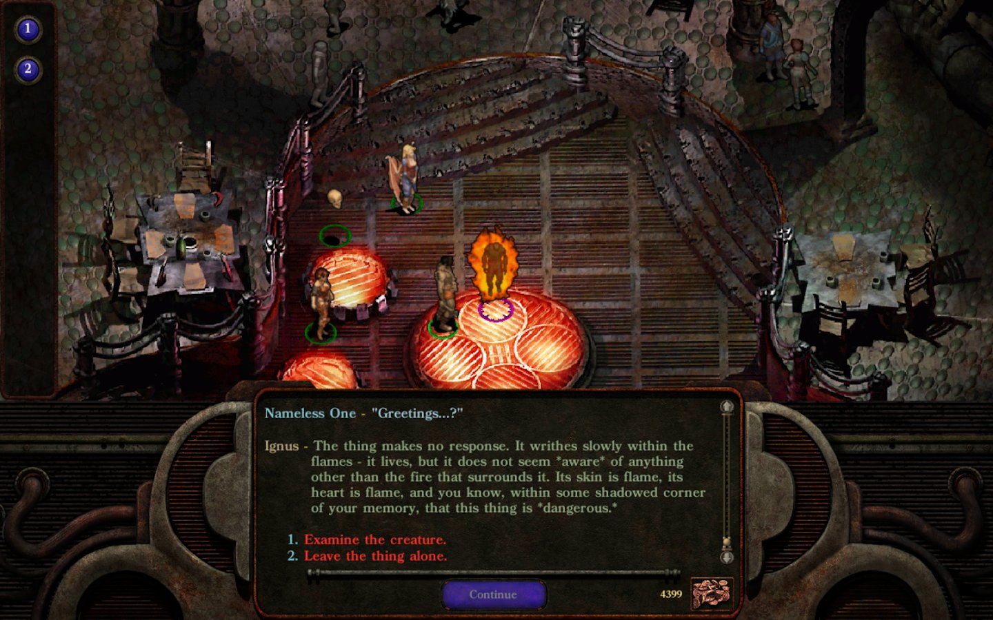 Planescape: Torment EE – el tan esperado juego ahora en dispositivos Android. Este juego original fue lanzado en 1999 y ocupó el primer lugar entre todos los RPG lanzados ese año. En este juego con una trama poco convencional, tu tarea será, en compañía de aliados, explorar la vasta metrópoli del Símbolo. Elige un personaje, dándole una apariencia única y diferentes habilidades. Explora la peligrosa ciudad y avanza a otros planos, utilizando el ojo Sin Nombre. Los jugadores del juego apreciarán la excelente y multifacética trama, donde cada uno encontrará algo interesante. Completa una misión peligrosa, resuelve acertijos desafiantes y descubre la increíblemente rica historia de esta fantástica ciudad. Participa en numerosas batallas con los enemigos y participa en una variedad de diálogos entre los otros personajes del juego.