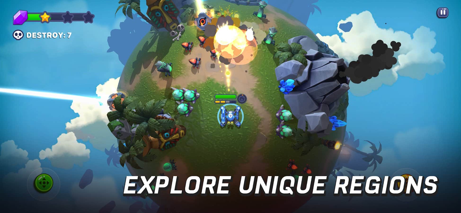 Planethalla - prepárate para tu propio robot para la batalla. Reúne cristales preciosos en cada uno de los niveles, navega a través de varios planetas en busca de amplificadores especiales, mejora las armas que recibes y derrota a muchos oponentes desconocidos que han entrado en tu camino. Aunque solo hay 3 regiones principales, difieren significativamente entre sí en ubicaciones interesantes, así que deberías visitarlas y ver qué encuentras en general.