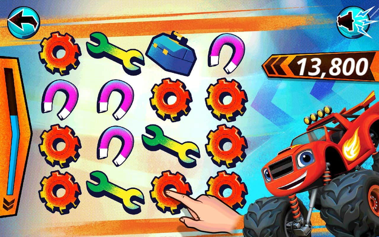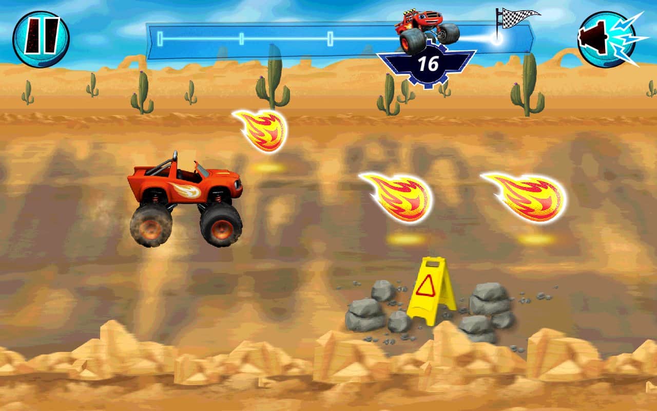 Tiempo de juego con Blaze – un juego para niños donde se encontrarán nuevamente con los famosos héroes como Flash, Smashed, Pickle, Roar y otros. En este juego conducirás por la ciudad de Axel en las camionetas más rápidas y poderosas de este juego. El juego cuenta con una gran variedad de mini-juegos donde lavarás las camionetas persiguiéndolas, recogiendo chispas y pintándolas por tu cuenta. Completa todas las pruebas y obtén una calcomanía, en el juego hay 12 calcomanías. Todas las calcomanías que consigas podrás gastar en la creación de tu propio mundo.