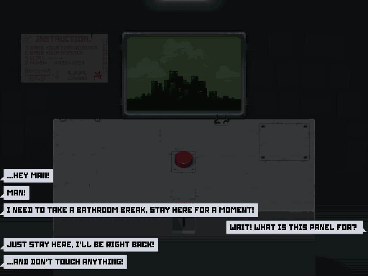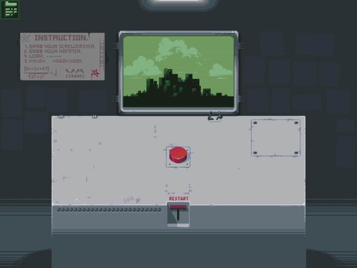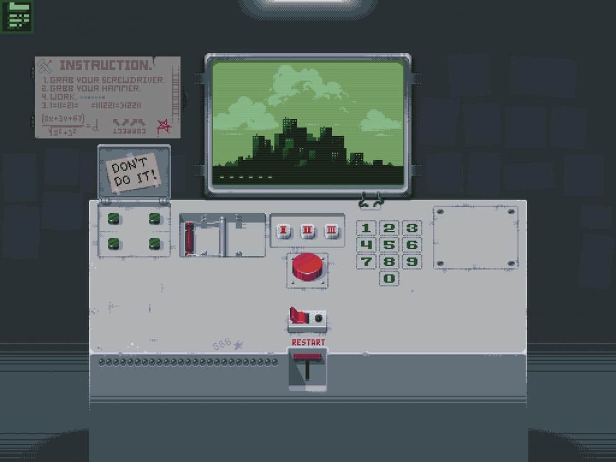 Por favor, no toques nada – un juego donde tus acciones determinarán las vidas de las personas. En este juego tridimensional te encontrarás en una habitación cerrada, donde te fuiste por un tiempo para observar el botón rojo, estrictamente prohibido y castigado, que no debes tocar. Este juego tiene más de diez finales diferentes, cada uno de los cuales dependerá de tus acciones. Resuelve rompecabezas y acertijos difíciles y trata de no presionar el botón rojo. Si aún presionas el botón, todas las consecuencias recaerán sobre tus hombros, ¡decide si vale la pena arriesgarse! Juega este juego y sumérgete por completo en la atmósfera, jugando un juego final.