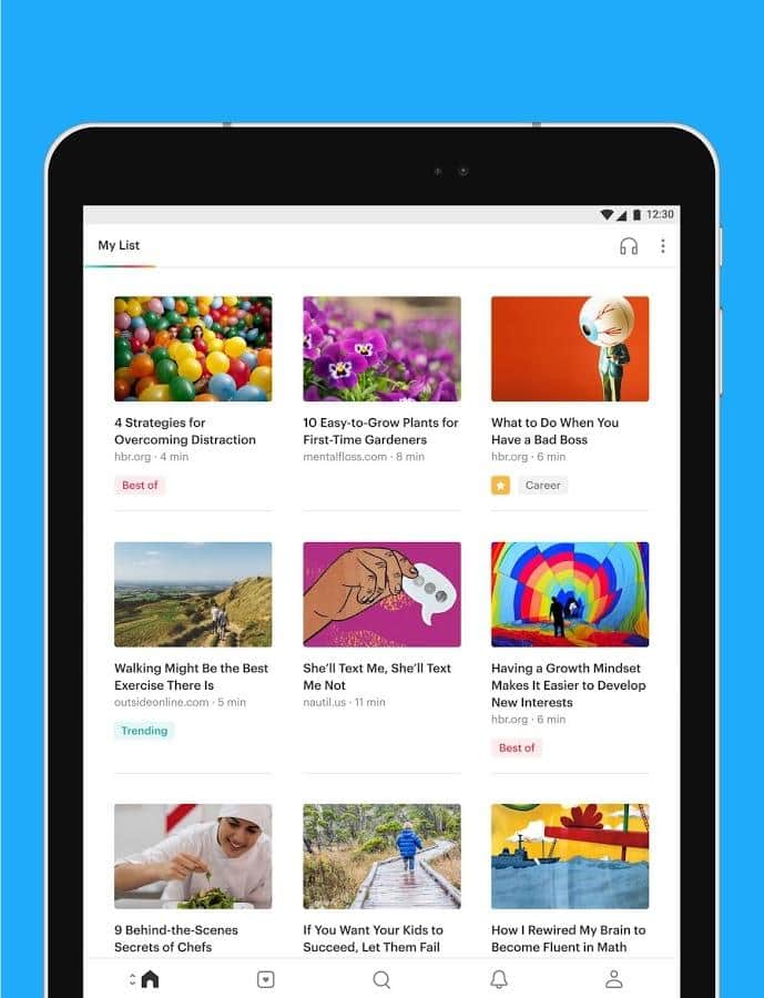 Como si no lo supiéramos, no podemos estar en línea todo el tiempo. ¿Qué hacer si hay muchos artículos interesantes en la Red y no hay tiempo para leer? Puedes usar la aplicación proporcionada y guardarlos o simplemente interesantes sin conexión. El programa está diseñado con un diseño simple y directo, además de guardar artículos, permite compartirlos con amigos que también han instalado Pocket. Y cuando se acumulan demasiado, se pueden dividir en etiquetas o enviar a favoritos. Es lógico eliminar lo que has leído, pero los artículos a los que quizás quieras regresar, se guardan en archivos.
