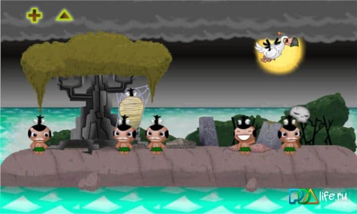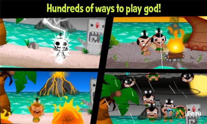Pocket God - con estos hombres divertidos puedes hacer lo que tu corazón desee: ahogarlos, lanzarlos a la boca de un tiburón, tirarlos a un volcán que después de tres "cadáveres" erupciona y destruye el resto. Organiza en el cielo la tormenta y golpea a los nativos con rayos. O si eres tan sediento de sangre - muéstrales el atardecer, que ellos se regocijan y bailan en la cima cuando tocan la pantalla, alimenta con frutas... en resumen, cualquier cosa.