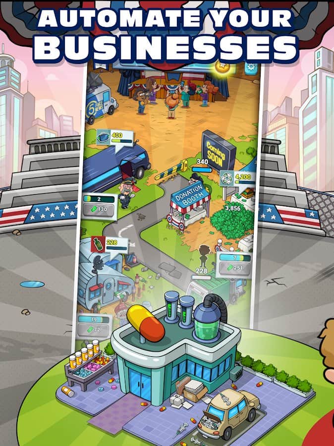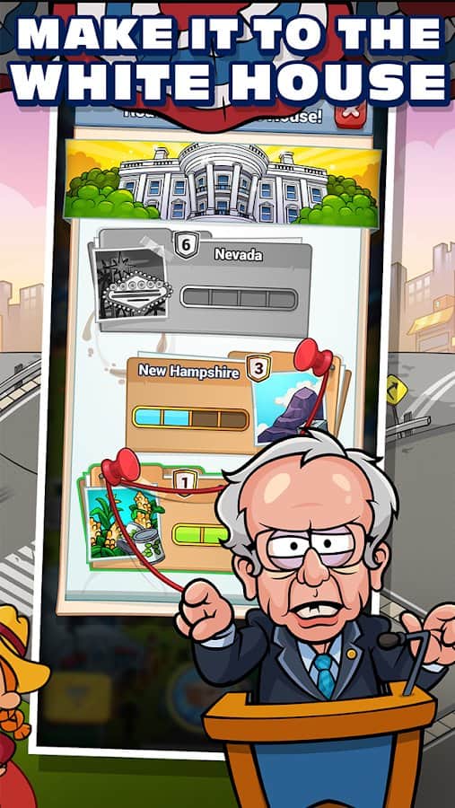 Pocket Politics 2 – es un simulador arcade del Presidente con elementos de estrategia. En la infancia, todos querían convertirse en Presidente, o al menos ser una persona del círculo cercano de amigos y conocidos. La política en Pocket 2 te da la oportunidad. Selecciona un candidato para el puesto de jefe de poder y una campaña publicitaria para asumir la presidencia. Dile a los ciudadanos lo que puedes hacer durante tu reinado, promete un potencial enorme. Eres libre de hacer todo lo posible para promover a tu candidato: aumenta tus ganancias a través de donaciones o invierte en el negocio. No olvides que tienes competidores y siempre están alerta. El juego es muy interesante y detallado. El humor sarcástico te entretendrá durante todo el recorrido, a menos que, por supuesto, sepas inglés.