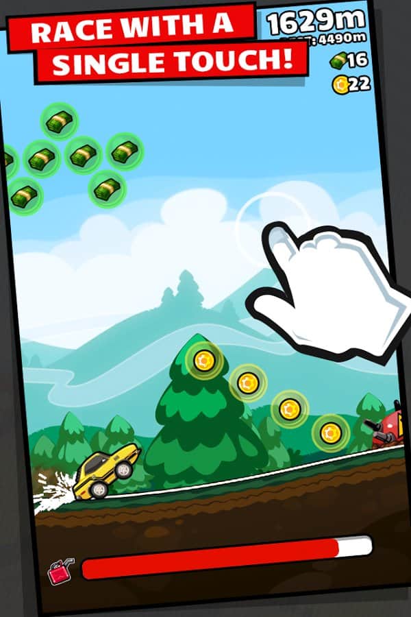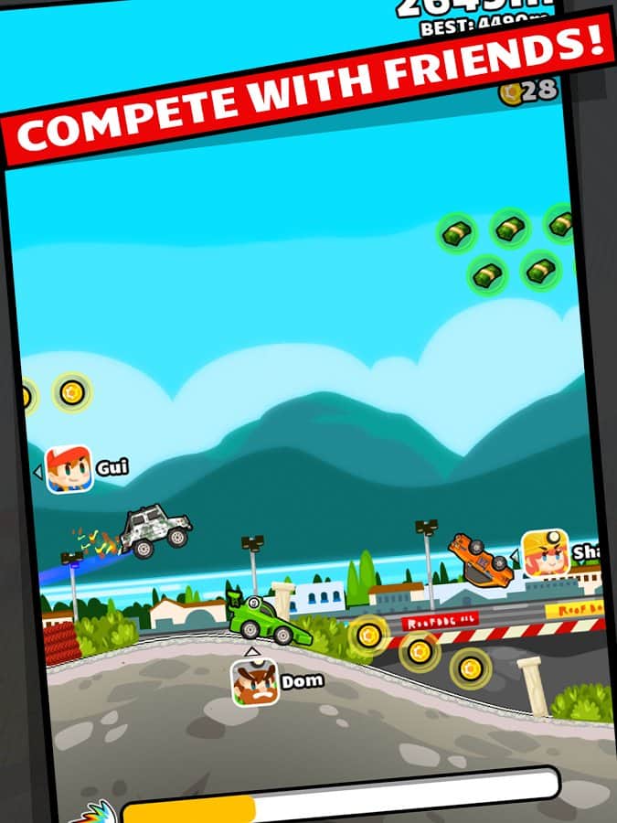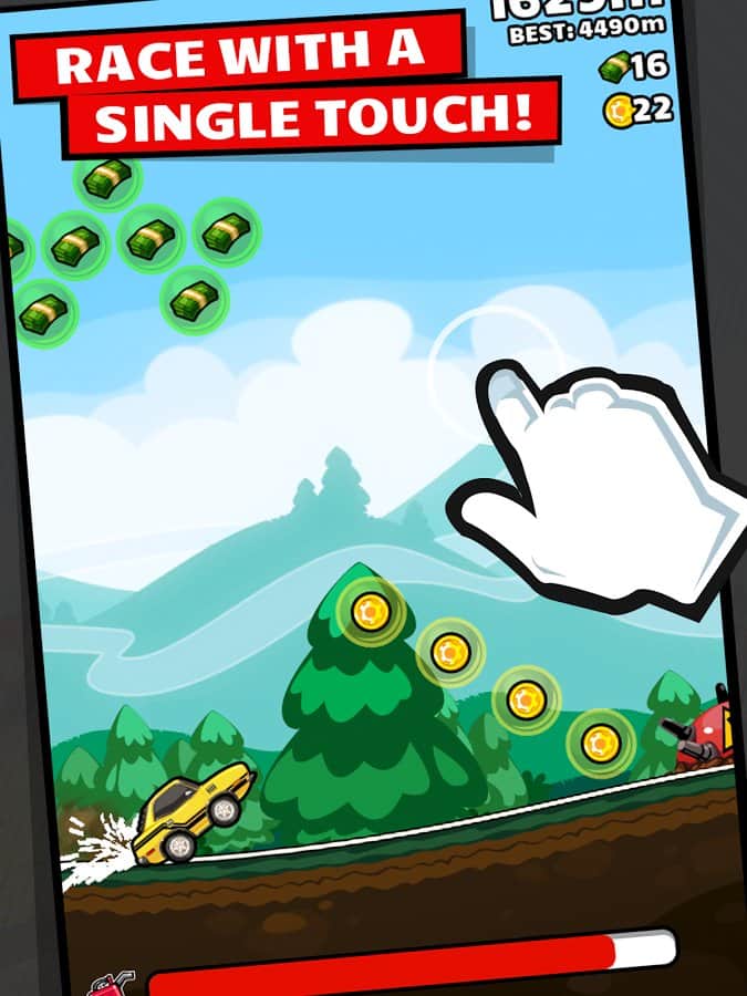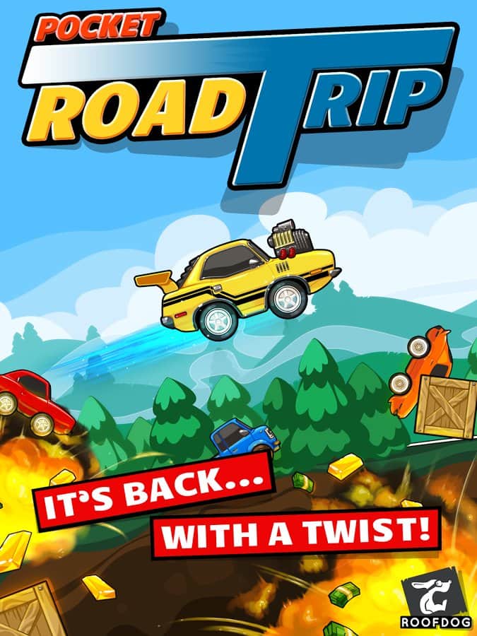 Pocket Road Trip - carrera loca en Android, con jugadores de todo el mundo. Participa en estas carreras, pisa el acelerador a fondo, adelanta a tus rivales y haz acrobacias locas, realizando volteretas y conduciendo sobre una rueda. Gana carreras y obtén un coche nuevo y genial, además de reunir tu colección de coches interesantes. Compite contra tus amigos y asciende a la cima de la tabla de clasificación superando a sus rivales.