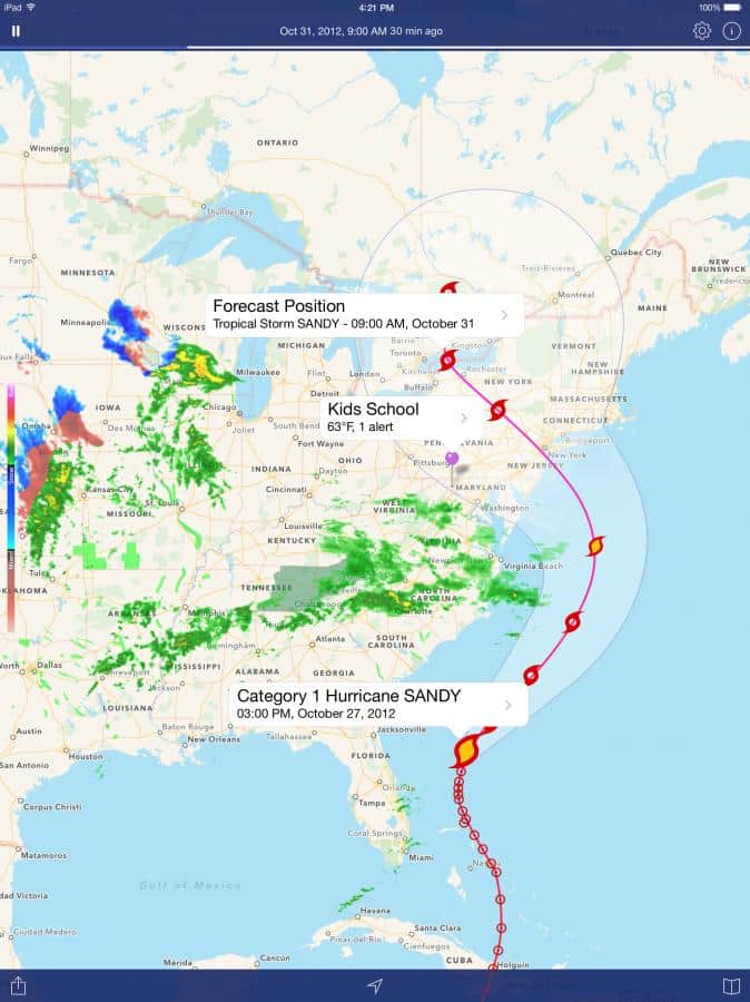 ¿Puedes creer en los pronosticadores del tiempo? Esta es una pregunta que no tiene respuesta, pero a veces sus pronósticos aún valen la pena escuchar. Además de las posibilidades banales de que el tiempo te obligue a llevar tu paraguas y vestirte abrigado, el pronóstico está guiado para capturar un hermoso atardecer o contemplar el cielo estrellado. Y aquí el radar meteorológico será un buen ayudante. No solo proporciona pronósticos detallados, sino que también muestra información sobre la presión, la visibilidad, la hora del amanecer y el atardecer, permitiéndote rastrear huracanes, captura la probabilidad de precipitación y el movimiento de la cobertura de nubes. La configuración del programa es muy flexible: puedes ajustar la transparencia y el tipo de mapa, el entretenimiento, la tasa de fotogramas y mucho más. También hay un widget para el centro de notificaciones e integración con el Apple Watch.