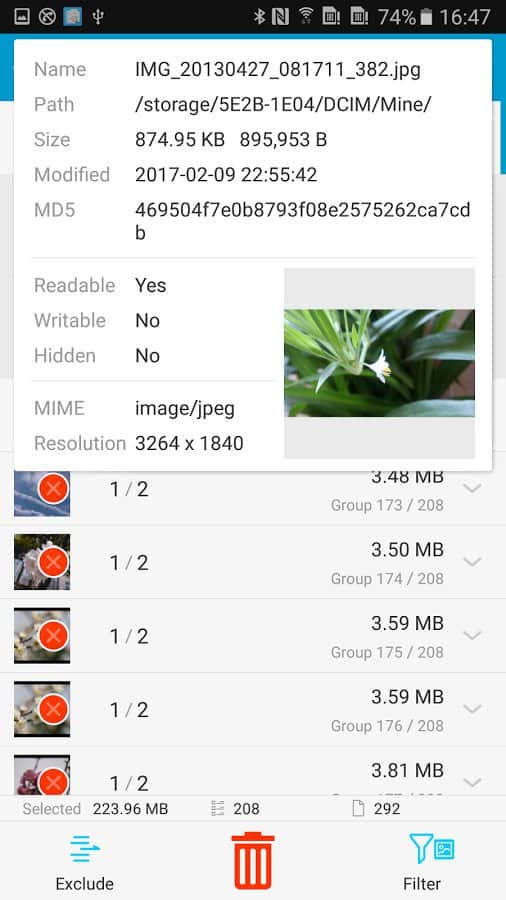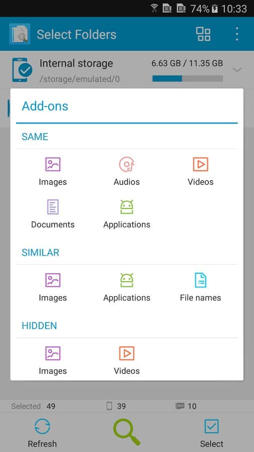 Aquí hay una aplicación simple e intuitiva, cuya única función es buscar y eliminar archivos duplicados. Pero ten cuidado de no eliminarlo junto con ellos y los originales. Y no se trata solo de memoria, sino también de la tarjeta SD conectada. También puedes eliminar la grabación, es decir, el programa no te alertará sobre copias específicas elegidas. Esta simple capacidad puede ahorrarte mucho espacio en la memoria del teléfono y mucho tiempo buscando. Es poco probable que accedas a la aplicación a diario, pero en una emergencia será útil, sin duda.