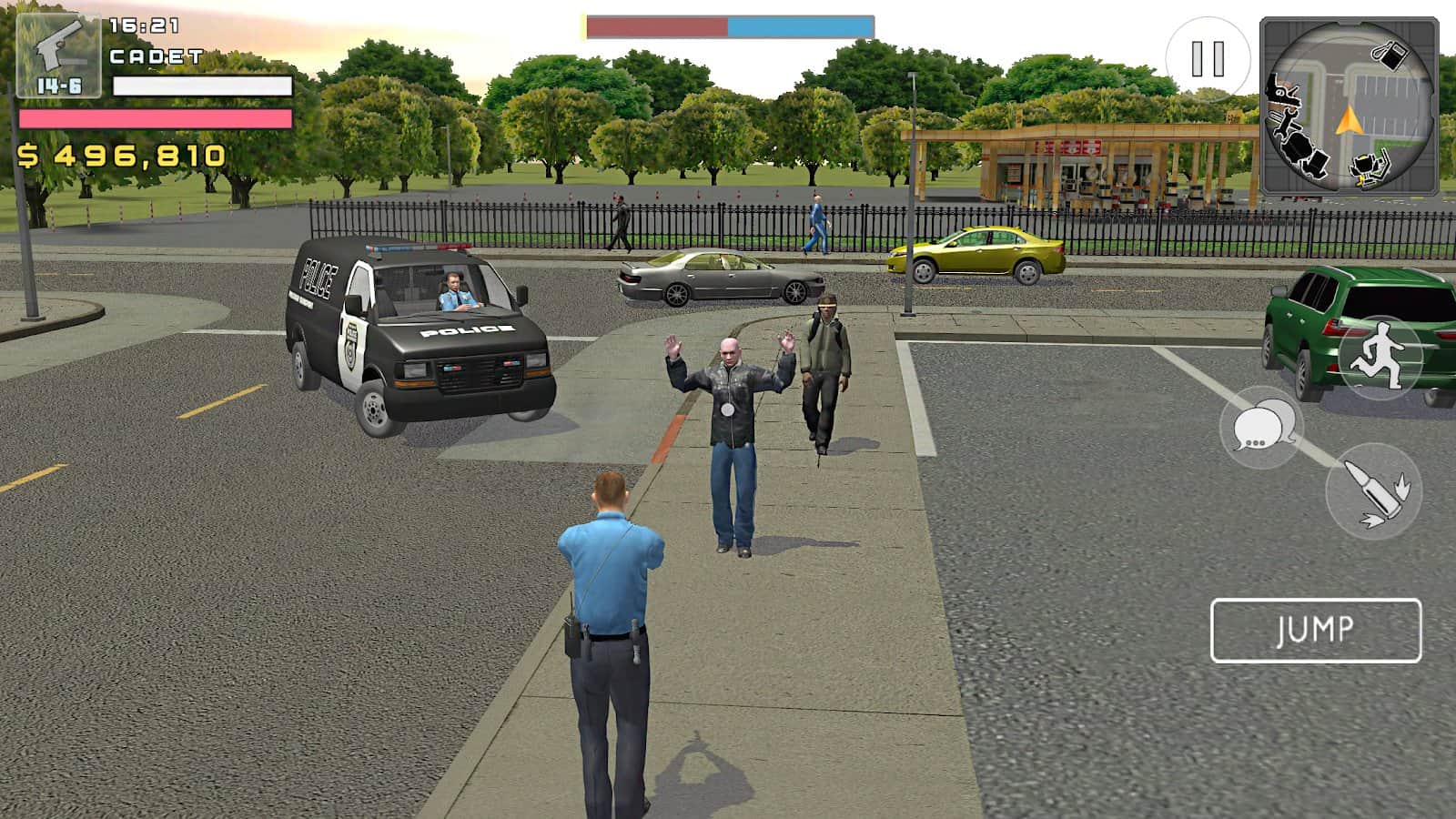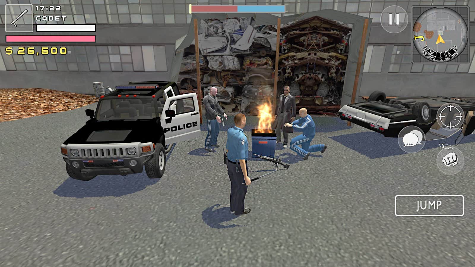 Simulador de Policía. Guerra de Pandillas – es un simulador para Android, donde te sentirás un verdadero POLICÍA. En este juego tendrás que pasar de cadete a capitán de la estación de policía. Acabas de graduarte de la Academia de Policía y fuiste asignado a un pequeño pueblo. En la ciudad, durante siglos, han gobernado varias pandillas, y el jefe de policía local se ha mantenido en un delicado equilibrio. Los problemas en la relación se acumularon y amenazaron con desbordarse en forma de esta guerra de pandillas. Toma el control de la ciudad y patrulla las calles deteniendo y arrestando a infractores y criminales. Realiza el trabajo rutinario de la policía, así como participar en emocionantes persecuciones y tiroteos.