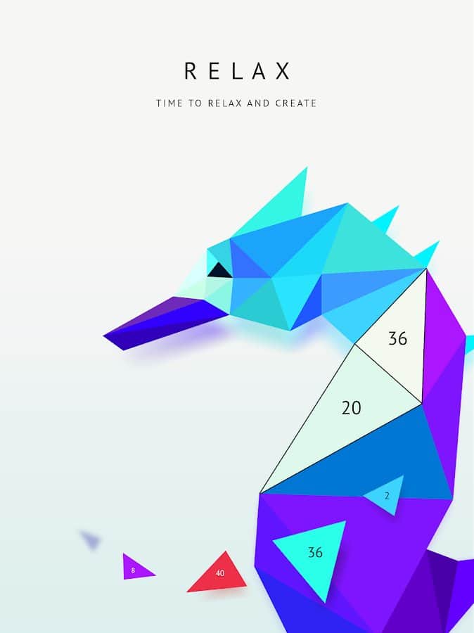 Poly Artbook - actuando lentamente, paso a paso, podrás reunir grandes dibujos tridimensionales a mano. Solo pega parte de la composición en la celda deseada y observa la aparición de imágenes de pandas divertidos, aves exóticas, flores inusuales o incluso un unicornio. En el juego hay actualizaciones artísticas constantes, por lo que no te faltarán nuevas imágenes. Tendrás la oportunidad de compartir la imagen resultante con amigos en Instagram, enviándola a la red social en solo tres segundos. Después de instalar la aplicación, obtendrás docenas de diferentes rompecabezas de polígonos que deleitarán tu vista con efectos 3D de primera calidad.