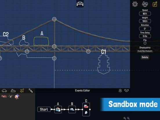 Poly Bridge – un fascinante rompecabezas donde tu tarea será construir puentes. Debes construir puentes, conectando las dos orillas y aplicando varios materiales. Una vez que el puente esté terminado, lo dejarás transportar, de hecho, verificándolo por su resistencia y adecuación. El juego te deleitará con una variedad de misiones y tareas que no te dejarán aburrido, como: transportar vehículos a la otra orilla que está situada en el nivel superior o hacer un puente deslizante para permitir el paso de grandes barcos. Con cada nuevo nivel, la complejidad del juego aumentará y tendrás que esforzarte bastante para completar el juego. Aplica toda tu imaginación e ingenio para construir puentes fuertes.