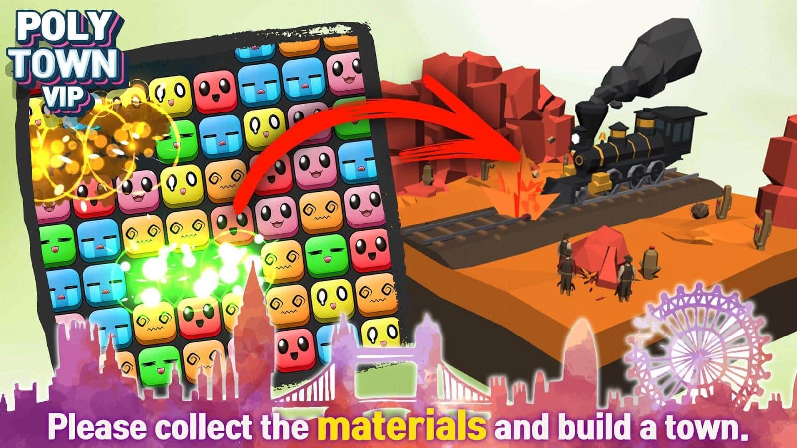 Poly Town es un juego de rompecabezas para Android donde construirás la ciudad. En este juego de tres en raya, tu tarea es hacer filas de bloques idénticos y obtener nuevos materiales para la construcción de la ciudad. Entrena tu ingenio y reacción y empareja bloques. Explora la ciudad variada y diversa que necesita tu ayuda y construcción. Construye la mejor y única ciudad y compártela con tus amigos. Recibe recompensas por los mejores resultados, nuevas unidades y hermosos fondos. Juega a este juego en cualquier momento libre y disfruta de numerosos efectos de unidades y fondos.