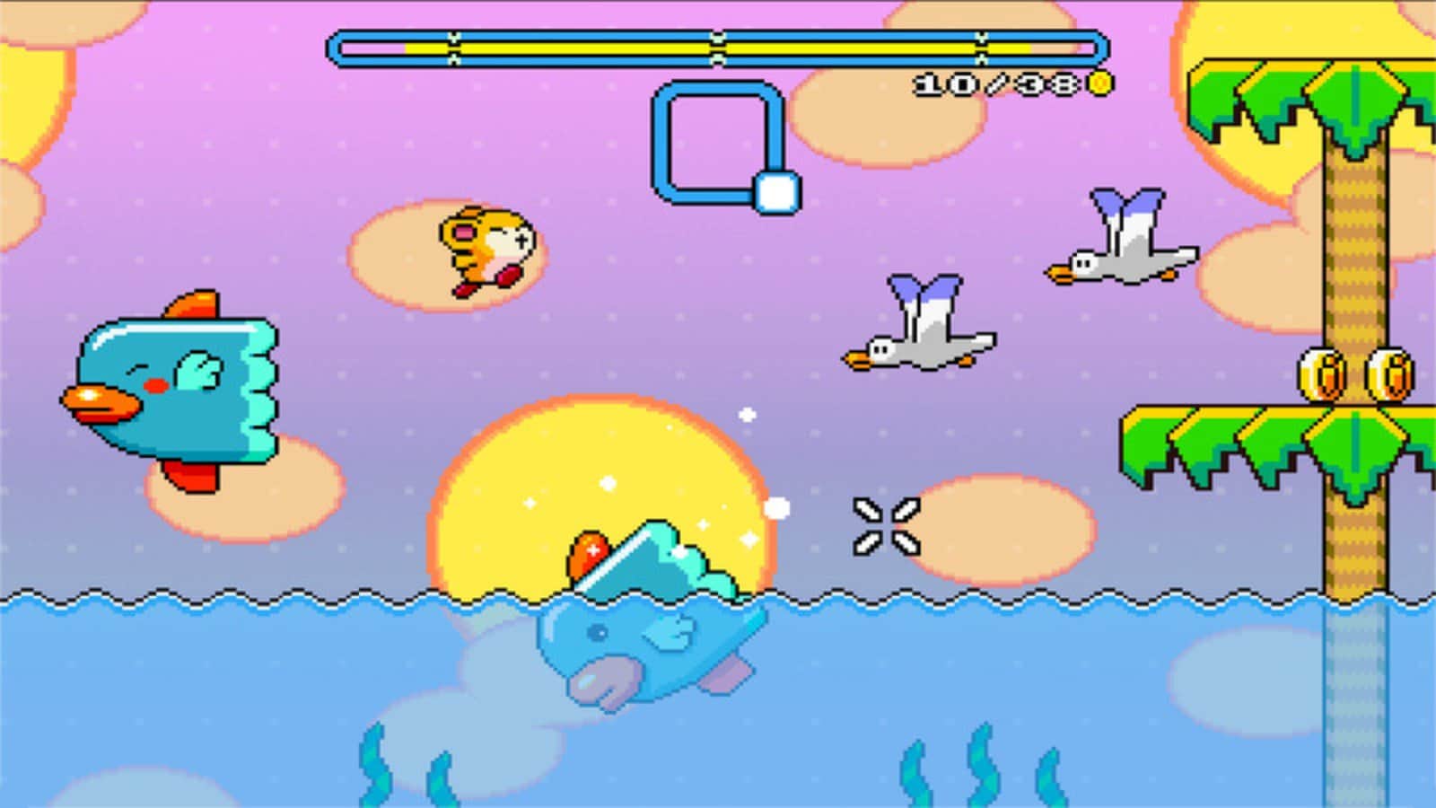 Pompom: El Gran Rescate Espacial - Pompom está ansioso por derrotar al Capitán Murmyaus, así que está listo para abrirse camino a través de la jungla, el espacio, las playas e incluso antiguos templos. 8 Piratas Gato secuestraron a un niño, y como estás listo para llegar al final, prepárate para saltar sobre peces voladores, esquivar ataques de flechas, espíritus vengativos, nadar cerca de pirañas, luchar contra platillos voladores y otros obstáculos.