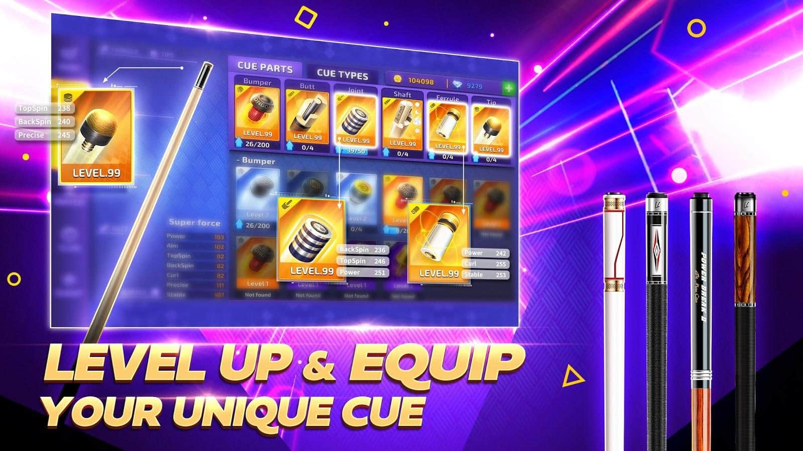 Pool King Battle es el clásico juego de simulación de Billar, en el que se hace especial hincapié en tus habilidades y competitividad. El juego te da la oportunidad de construir tu propia carrera en este emocionante y hermoso deporte, el cual no está al alcance de todos. En él podrás aprender este arte desde cero y alcanzar las más altas cumbres. Tienes la oportunidad de jugar con amigos en línea y con varios oponentes de todo el mundo, mejorando tus habilidades, así como tu calificación y respeto por los oponentes. El juego presenta un sistema de puntería único, que tuvo en cuenta incluso los más pequeños detalles en los golpes más precisos.
