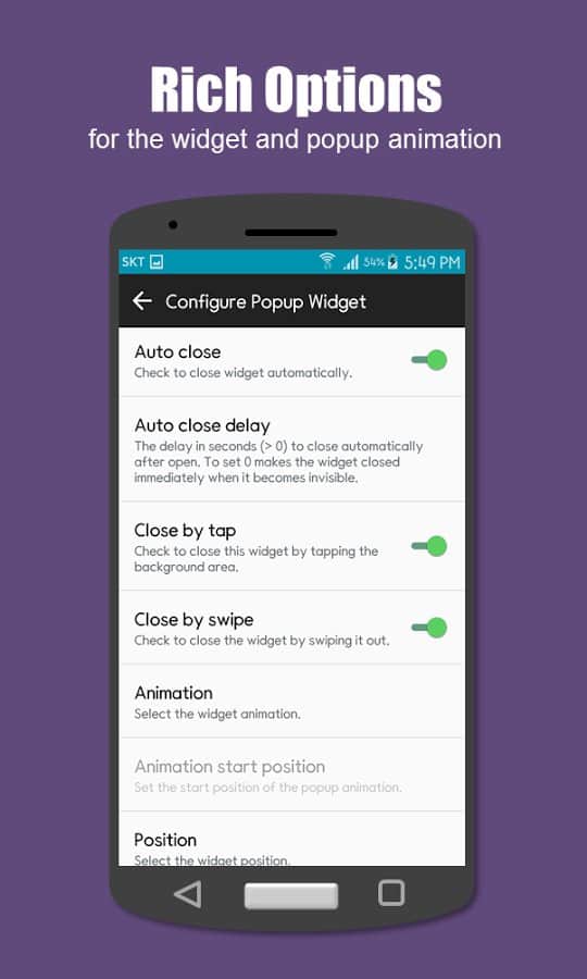 Popup Widget 3 es una gran aplicación para crear widgets. Con la adición de animación a ellos. Crea tu propia interfaz única para tu dispositivo Android. Además, puedes cambiar fácilmente el fondo de escritorio entre más de 20 fondos ofrecidos. Características: