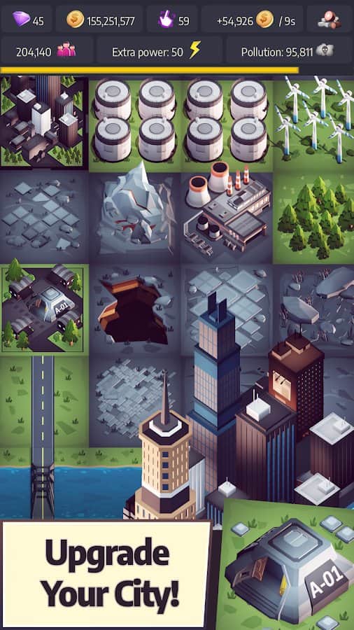 Post Apo Tycoon - Constructor Ocioso - ¡Restaura el mundo de las cenizas! Sumérgete en el emocionante mundo post-apocalíptico de "Post Apo Tycoon", donde tu misión es revivir un planeta devastado después de una catástrofe nuclear. Toma el control de la restauración del ecosistema, construye una sociedad próspera y trae la vida de vuelta al mundo. ¡No hay límites de tiempo aquí! Juega a tu propio ritmo, planificando tus pasos y creando la sociedad perfecta sin estrés.
