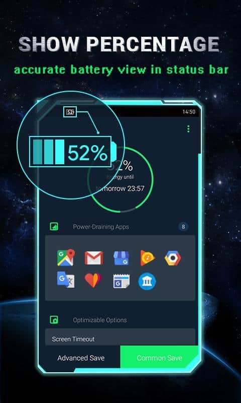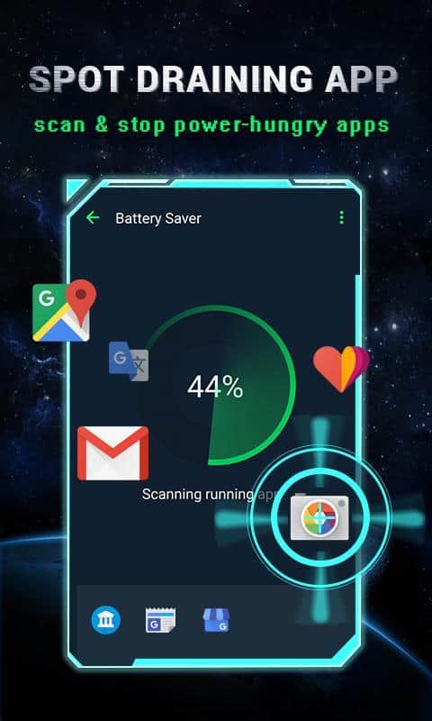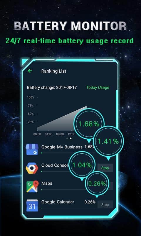 ¿La batería de tu smartphone se consume más cada día? Esto sucede debido a que se ejecutan muchos servicios de terceros, que están ocultos y aunque no siempre son necesarios, consumen mucho nuestra batería. Esta aplicación te ayudará a enfrentar este problema y a optimizar todas las aplicaciones. No necesita derechos de root, todo lo que necesitas hacer es instalarla, lanzarla y con un clic optimizar el rendimiento de tu smartphone. Además, encontrarás mucha información diferente sobre tu dispositivo.
