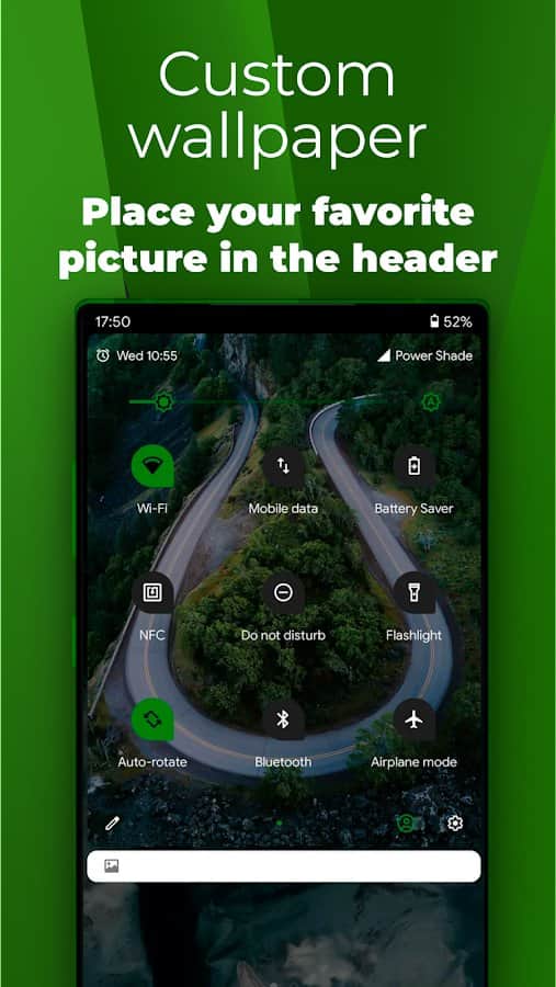 Los paneles de notificación de Power Shade - Tu teléfono no puede funcionar correctamente si no recibe o muestra todas las notificaciones necesarias. Para que te sea conveniente verlas constantemente, puedes utilizar esta aplicación, donde puedes personalizar completamente la apariencia del panel de notificación a tu gusto. Personaliza las funciones, elige tu imagen favorita para mostrar en el fondo y personaliza cualquier característica: selecciona colores, iconos, fotos de perfil, estilo, tema, cuadrícula, formas y más, todo disponible dentro de la aplicación.