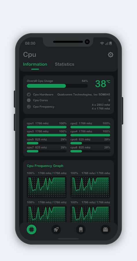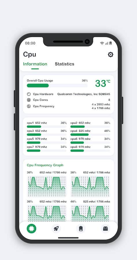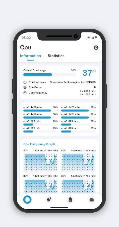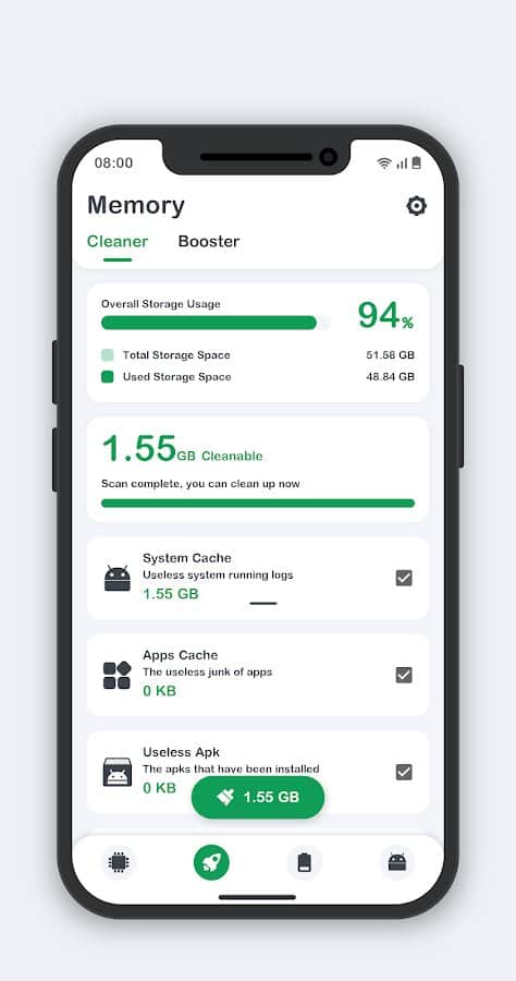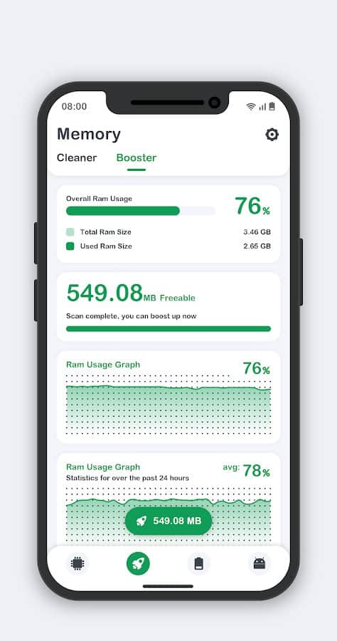Monitor de Sistema Potente - Mantén tu dispositivo limpio y no ensucies con basura. Y esta aplicación te ayudará con esto. Aquí encontrarás todo lo que necesitas y estará todo presentado en gráficos útiles. ¿Memoria obstruida? No hay problema, con solo un botón, la aplicación limpiará la memoria de tu dispositivo. No más miedo de que se eliminen tus archivos importantes, elige qué carpetas tendrán acceso a esta aplicación.