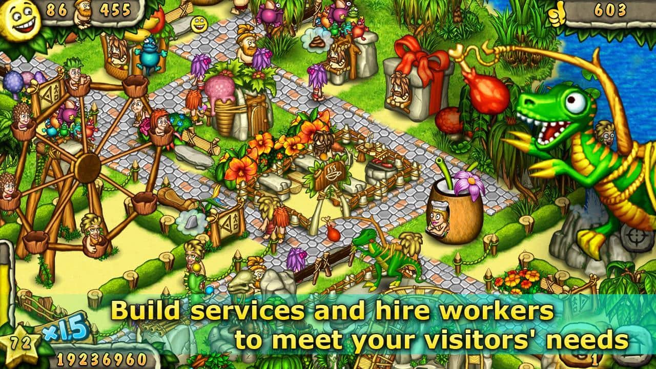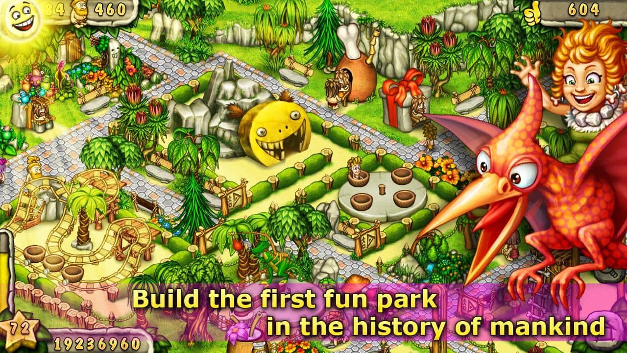 Constructor de Parque Prehistórico – un juego en Android, donde tienes que entrar en un mundo prehistórico y construir allí tu propio entretenimiento de vapor. Sumérgete en el mundo de las personas prehistóricas y haz que sus vidas sean más interesantes y entretenidas. Construye tu propio parque de diversiones, comenzando por los columpios habituales y terminando con toboganes con giros y vueltas vertiginosas. Utiliza diversas decoraciones para construir, así como árboles y flores exclusivas. Divierte a tus visitantes no solo con atracciones, sino también con delicias en forma de barbacoa y helados. Encuentra un buen trabajador que te ayude a construir un parque y entretener a tus invitados.