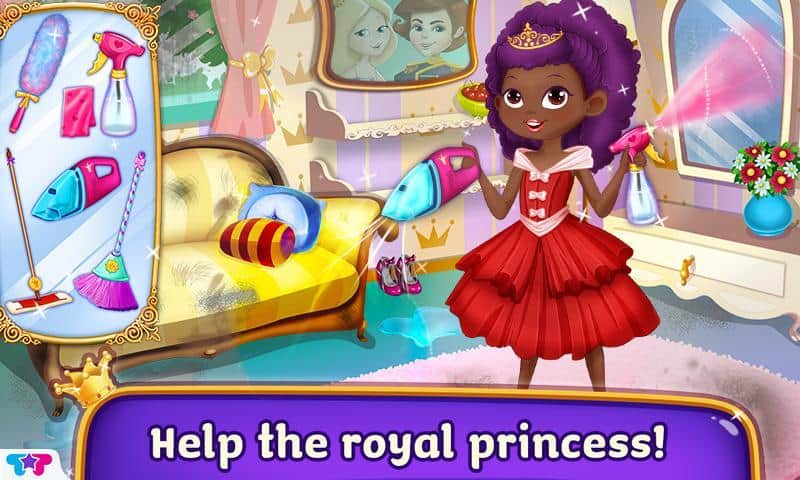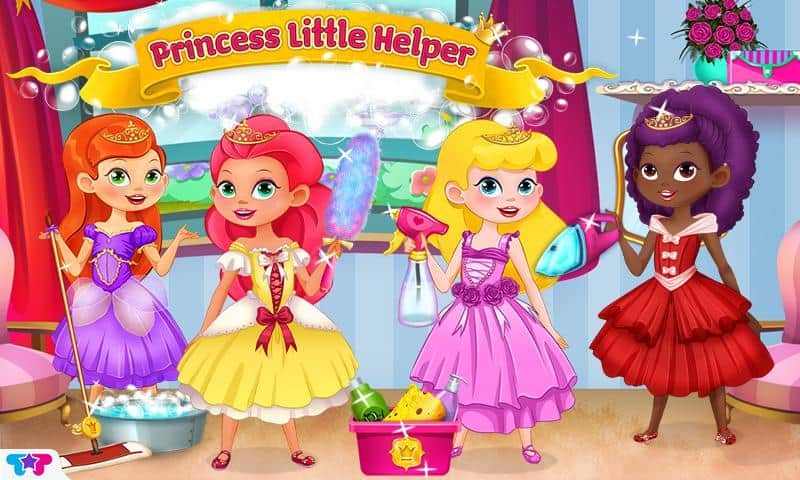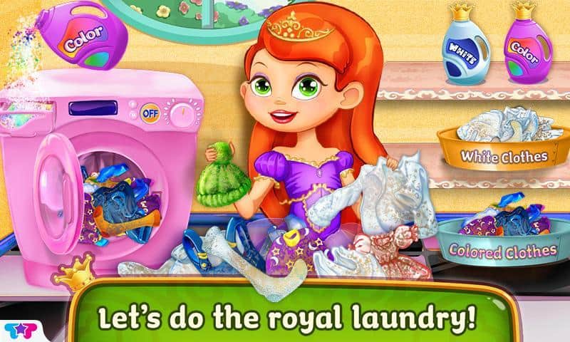Princesa pequeña Ayudante / Princesa Pequeña Ayudante - ¡Incluso las princesas aman ayudar en el hogar del castillo! Elige tu favorita y ponte a trabajar. Lava la ropa, organiza los calcetines en su lugar, simplemente cuelga la ropa de la Princesa, restaura el orden en la sala de estar dorada y planta flores. ¡Muestra a todos cómo cuidas bien del castillo! Te esperan 6 actividades llenas de diversión en el Palacio.