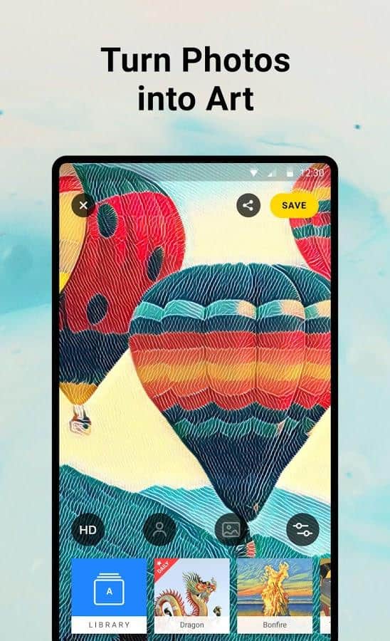 Prisma para Android - ¡con esta aplicación puedes sentirte como un verdadero artista! Convierte tus fotos en verdaderas obras maestras utilizando estilos de artistas de clase mundial: van Gogh, Picasso, Levitan. Prisma para Android procesa tus fotos en un servidor separado, lo que permite reducir significativamente el tamaño de la aplicación, pero desafortunadamente aumenta la velocidad de procesamiento de fotos.