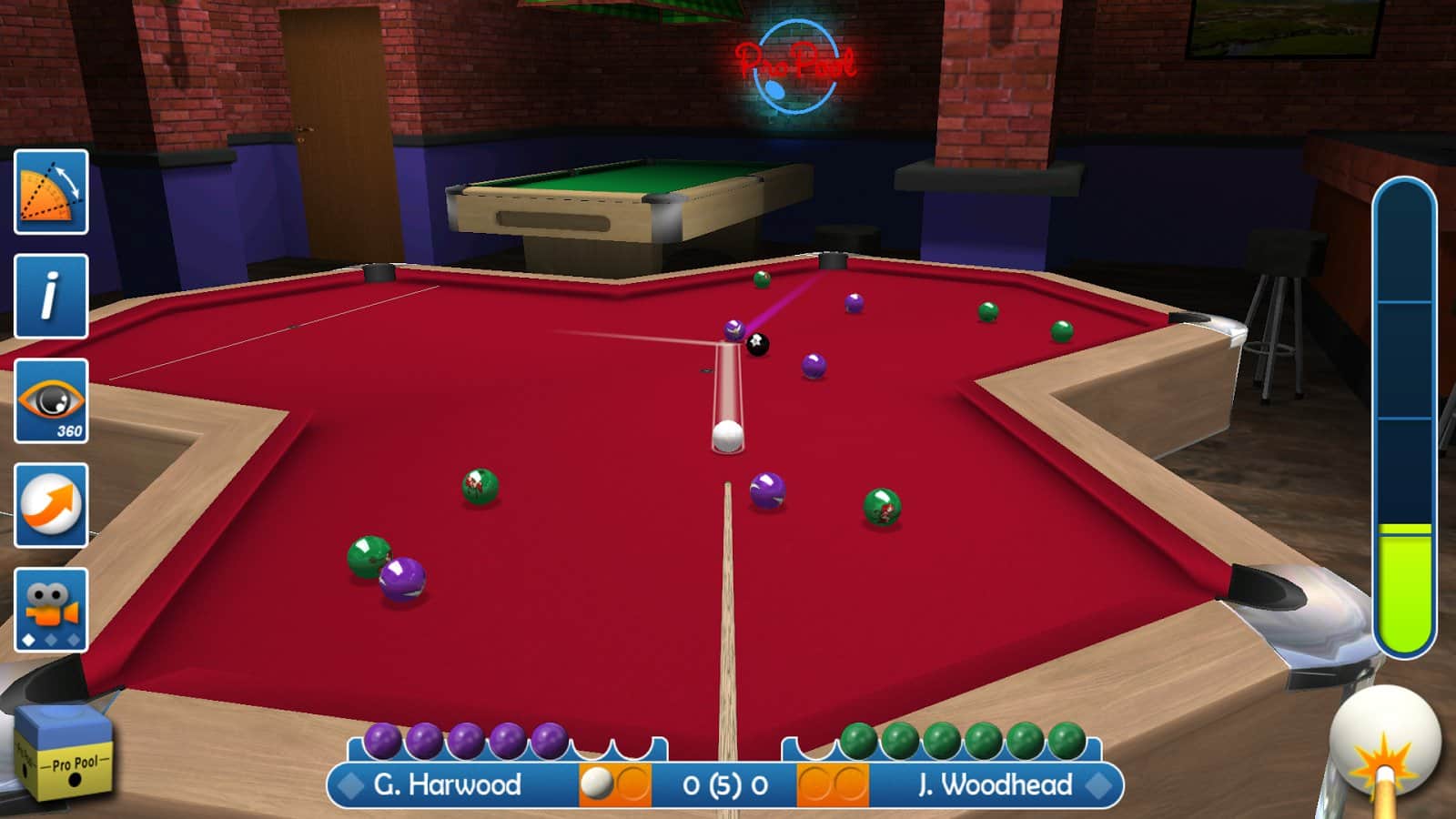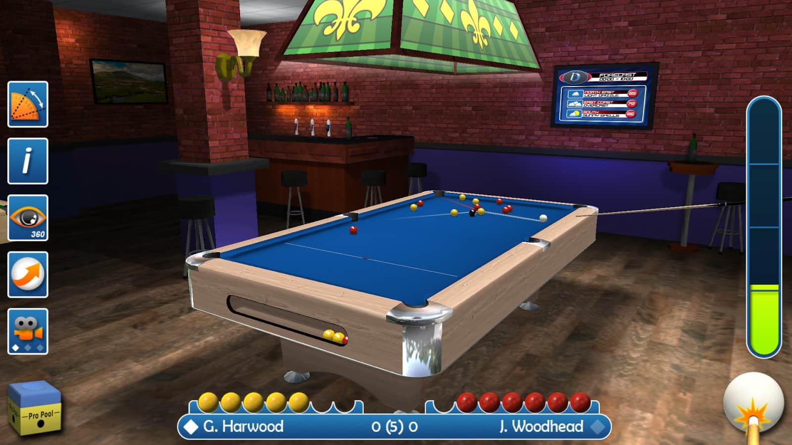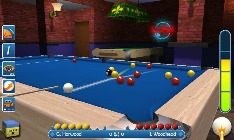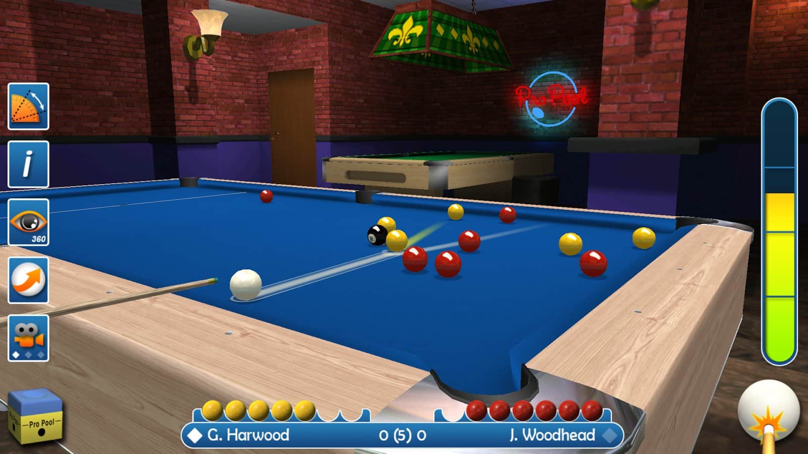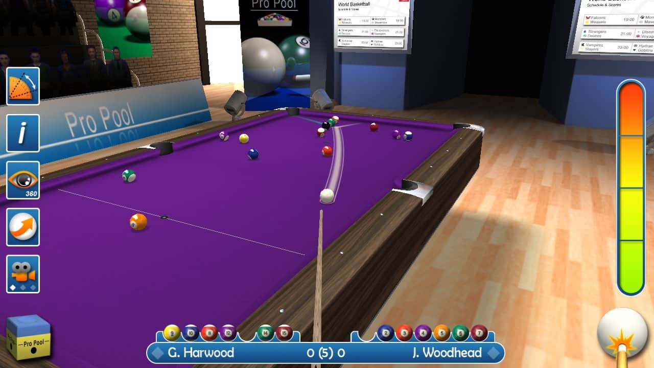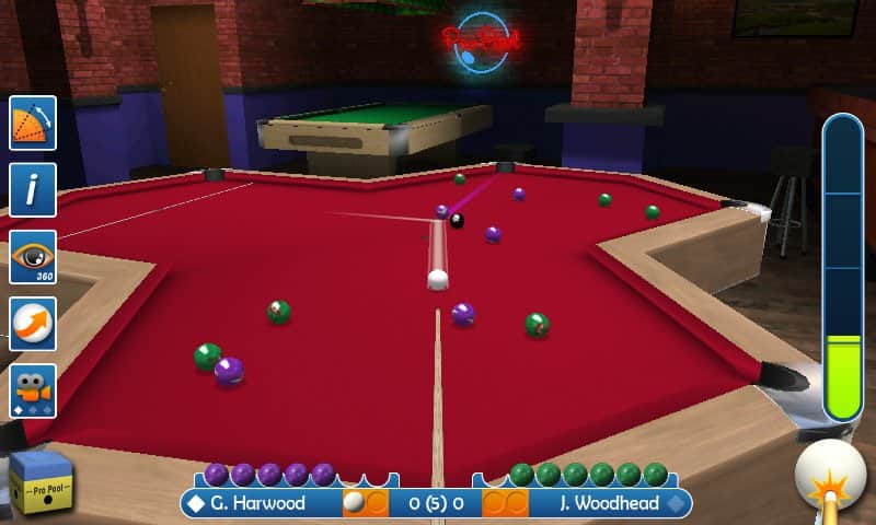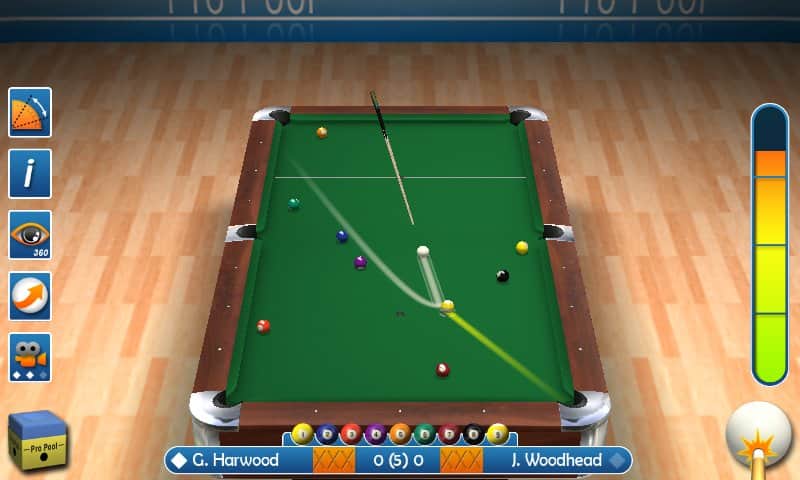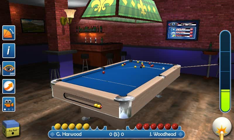 Pro Pool 2012 - Maravilloso billar para Android, que deleitará a todos los aficionados a estos juegos. Encontrarás gráficos tridimensionales realistas y una jugabilidad inolvidable. Participa en campeonatos y torneos en diferentes tipos de billar. En el juego hay cinco niveles de dificultad. Cuanto más avances, más difíciles serán los oponentes. Así que, el juego ofrece una variedad de mesas.