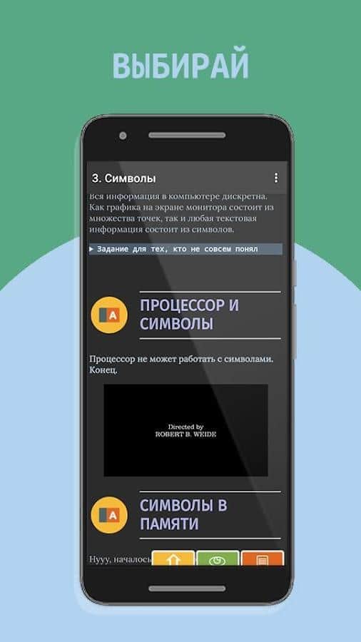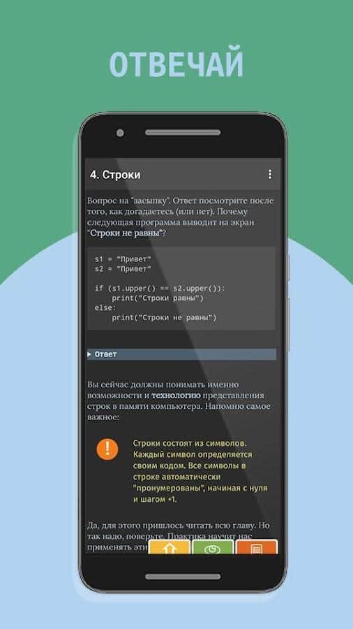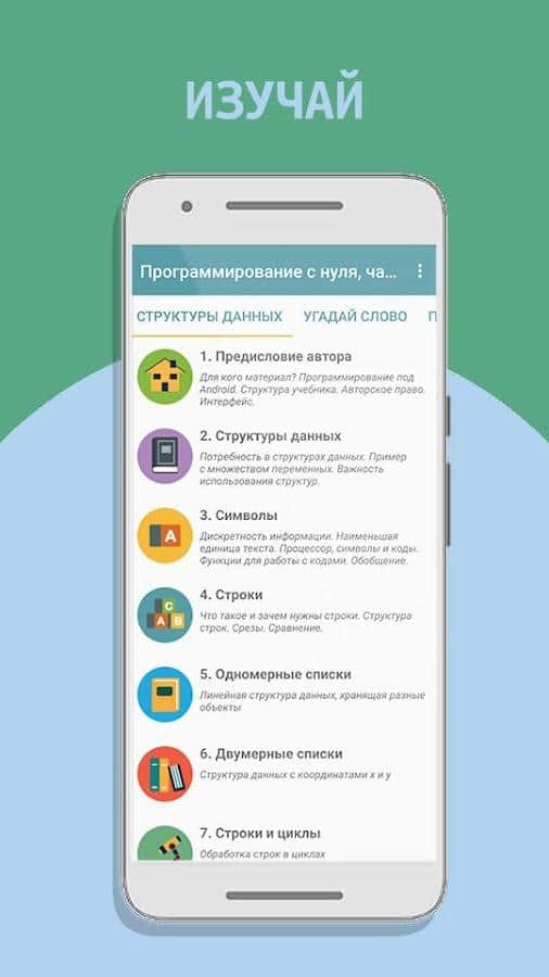 Programación de juegos, creación desde cero (Python 3) 2 - ¡Es bastante posible aprender a programar desde cero, incluso para un niño, un adolescente o un adulto! Esta útil aplicación contiene una selección completa de información necesaria, dispersa en varias categorías y como un excelente complemento — un cuestionario de manera lúdica. Además de que puedes estudiar los datos para empezar, tienes la oportunidad de jugar: adivina la palabra, etiqueta, Sokoban, invasores del espacio y otros, cada uno de ellos tiene sus propias reglas y el proceso de asimilación de información.