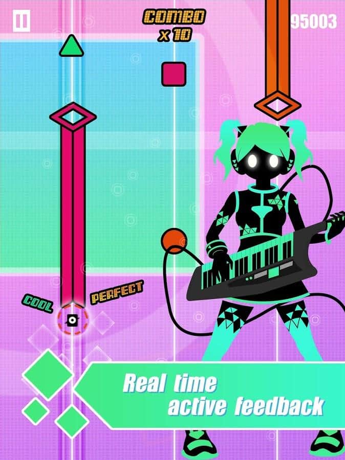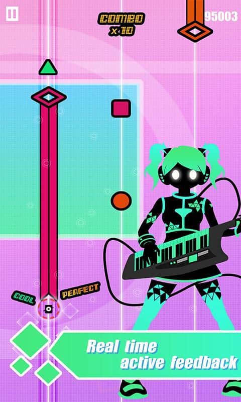 - Optimización de la canción: Creada por capricho, en el modo difícil de nueva música electrónica hay una larga presión con tres dedos