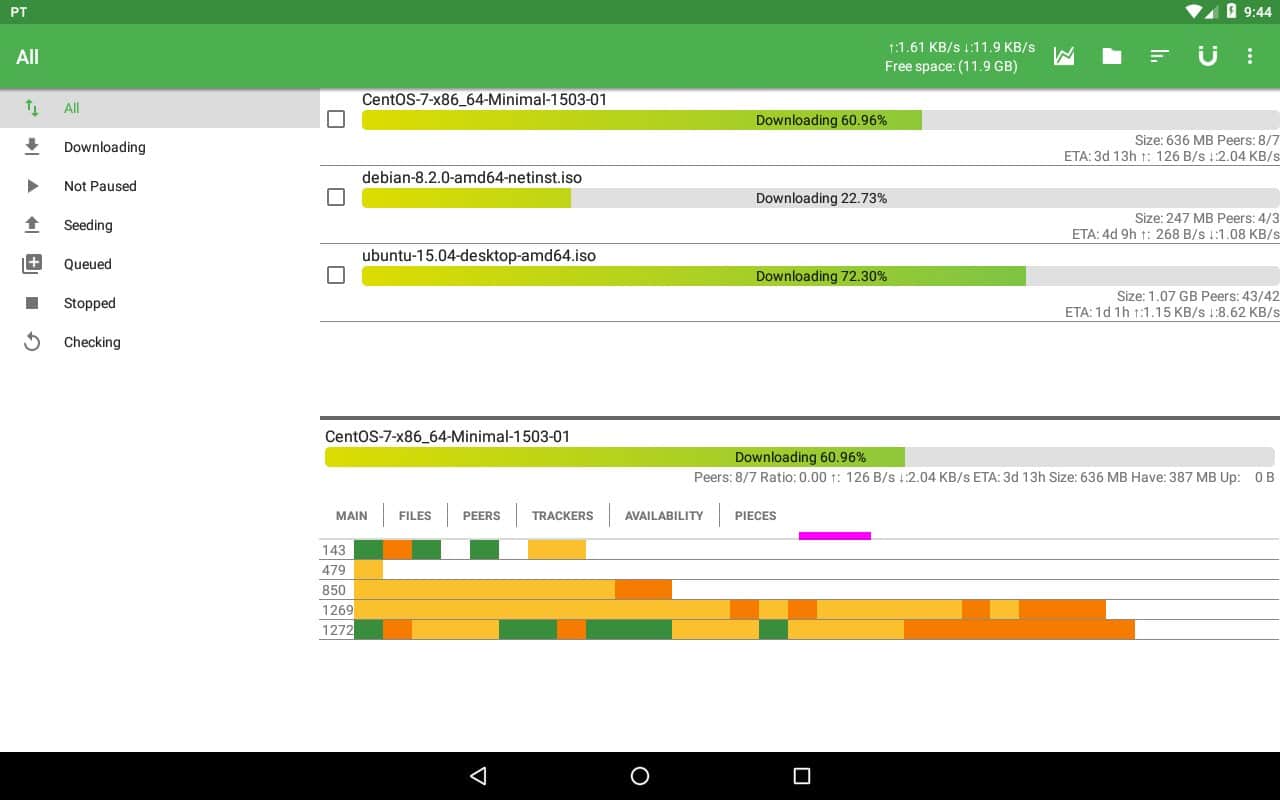 PTorrent Pro - Cliente de Torrent es un cliente de torrent fácil y conveniente con muchas funciones diferentes. Lo primero que llama la atención es la interfaz de esta aplicación, es muy simple y muy brillante, y puedes reemplazar el fondo que necesites. Puedes crear un archivo torrent o un enlace magnético.