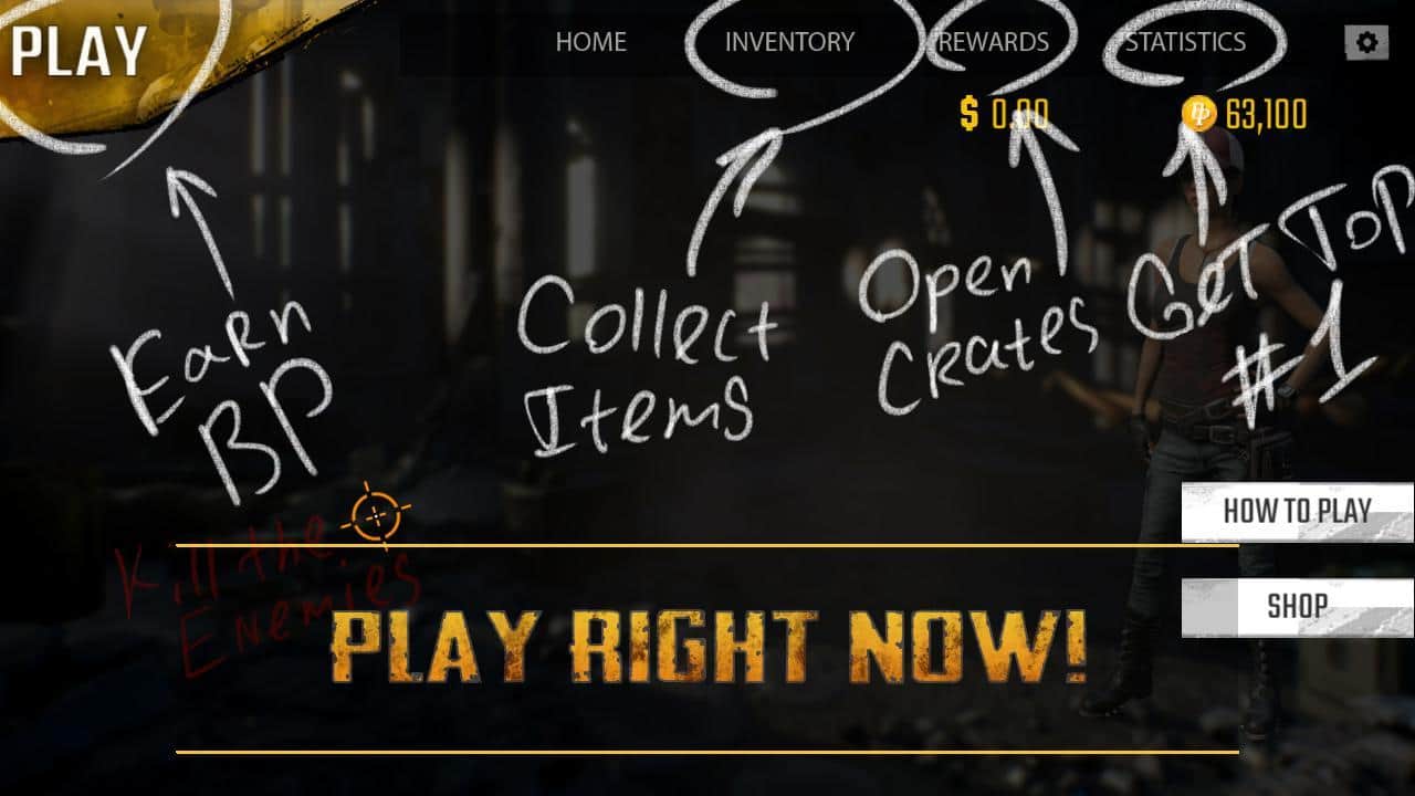 PUBG Clicker | Simulador de Cajas – el juego en Android, creado a partir de la trama del famoso juego PLAYERUNKNOWN''S BATTLEGROUNDS. En este juego, tu tarea principal será hacer clic en la pantalla de tu teléfono o tableta y abrir cajas. Toca la pantalla de tu dispositivo y destruye a los enemigos que competirán contigo. Gana más BattlePoints y puntos de habilidad y consigue los cofres y llaves de estos. Abre la caja y recopila ropa para el héroe, que te llevará a los primeros lugares de la tabla de clasificación. Juega a este juego y aprovecha tu tiempo libre, recopilando ropa para el héroe.